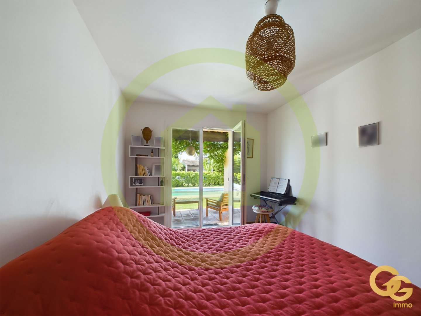 Elle se compose au rez-de-jardin d’une belle pièce de vie avec salon, séjour, coin feu avec poêle à bois et grandes baies vitrées donnant sur la terrasse et la piscine, d’une cuisine ouverte équipée, d’une suite parentale avec dressing et salle d’eau, d’une chambre avec terrasse, d’un bureau avec petite chambre attenante, d’un cellier et d’un WC indépendant.