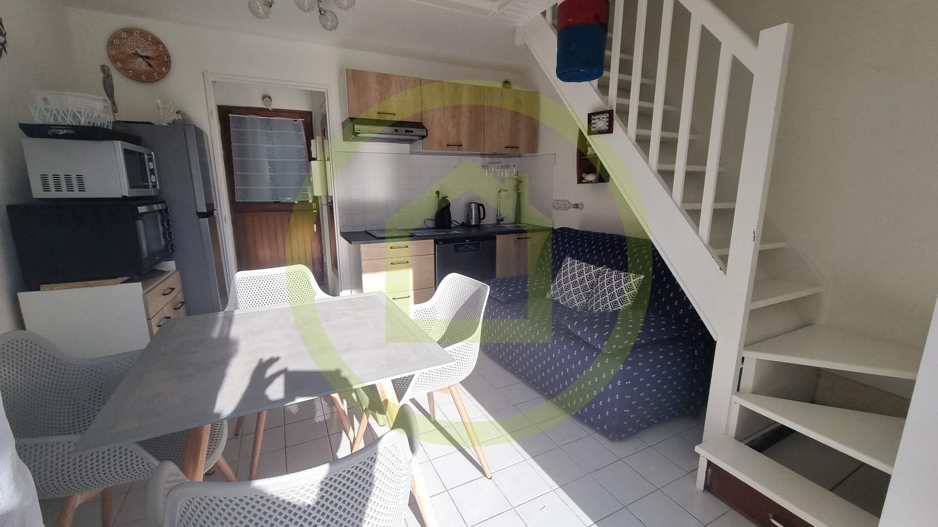 44420 – PIRIAC SUR MER – Emplacement idéal pour résidence secondaire ou investisseur, à quelques centaines de mètres de la plage et baie de Toulport et sentiers de la côte sauvage, cette maison fonctionnelle et optimisée de 24 m² habitables et 35 m² utiles, se compose d’une entrée avec rangement intégré, une salle d’eau avec wc, une kitchenette aménagée et équipée ouverte sur pièce de vie donnant accès à la terrasse bois et jardin exposés sud/ouest, au rez de chaussée. Palier, et 2 chambres mansardées pouvant accueillir 4 couchages, à l’étage. Cellier pour le rangement. Une place de parking aérien privative. Fibre. Maison pouvant être vendue meublée. Un court de tennis à disposition, exclusivement réservé aux résidents.
