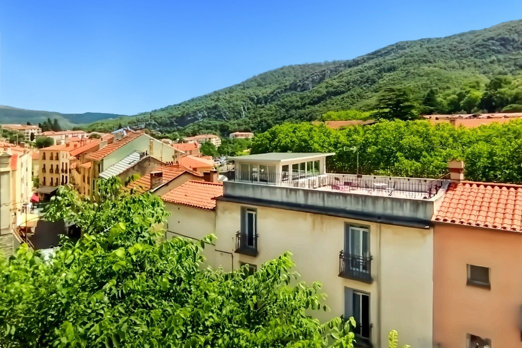 Situé au cur d’Amélie-les-Bains, à deux pas des célèbres cures thermales et de l’authentique église Saint-Quentin, ce magnifique immeuble du 19ème siècle attire immédiatement le regard par son élégante architecture, l’une des plus remarquables de la ville.
