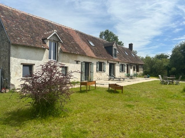 CHARMANTE LONGERE RENOVEE EXCLUSIVITE Axe Brou / La Bazoche Gouet. Située en campagne, en bout de chemin : charmante longère de 203 m2 offrant tranquilité et cadre bucolique. Au rez-de-chaussée : entrée sur grand salon spacieux et convivial, cuisine avec poêle à bois, cellier, chambre, salle d’eau, wc et buanderie. A l’étage : passerelle desservant 2 belles chambres. Dans le prolongement en étage : possibilité d’aménager une 4e chambre et/où suite où appartement avec accès indépendant ou pas. Pompe à chaleur récente. Agréable terrain sur 1 530 m2 avec terrasse, mare, puits et parcelle attenante de 3 350 m2 en prairie. Pour amoureux de la nature : à visiter sans tarder ! Photos et renseignements complémentaires sur demande. Idéale également en résidence secondaire : à 1h50 de Paris (155 km). Accès gares : Châteaudun/Austerlitz en 1h35 où Brou/Montparnasse.