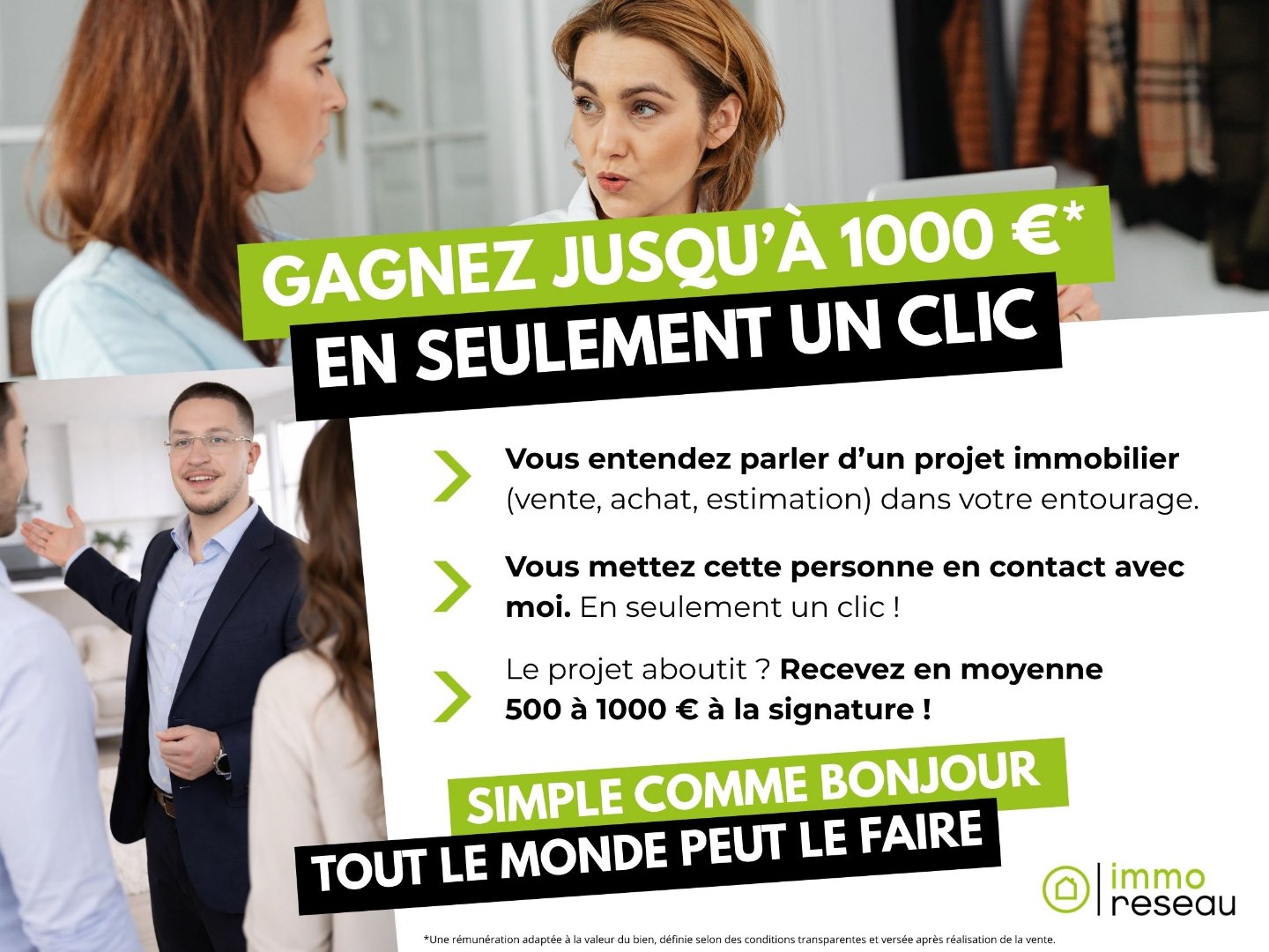 Cette présente annonce a été rédigée sous la responsabilité éditoriale de Sony KERIGER agissant sous le statut d’agent commercial immatriculé au Ville du greffe : MELUN sous le numéro RSAC N° 890 613 219 auprès de la SAS IMMO RESEAU au capital de 10 000 – Réseau national immobilier sur internet, 44 Allée des Cinq Continents – 44120 VERTOU – RNE NANTES 519 718 886. Carte professionnelle T et G n° CPI 3002 2018 000 024 971 CCI de Nantes-Saint-Nazaire (44)