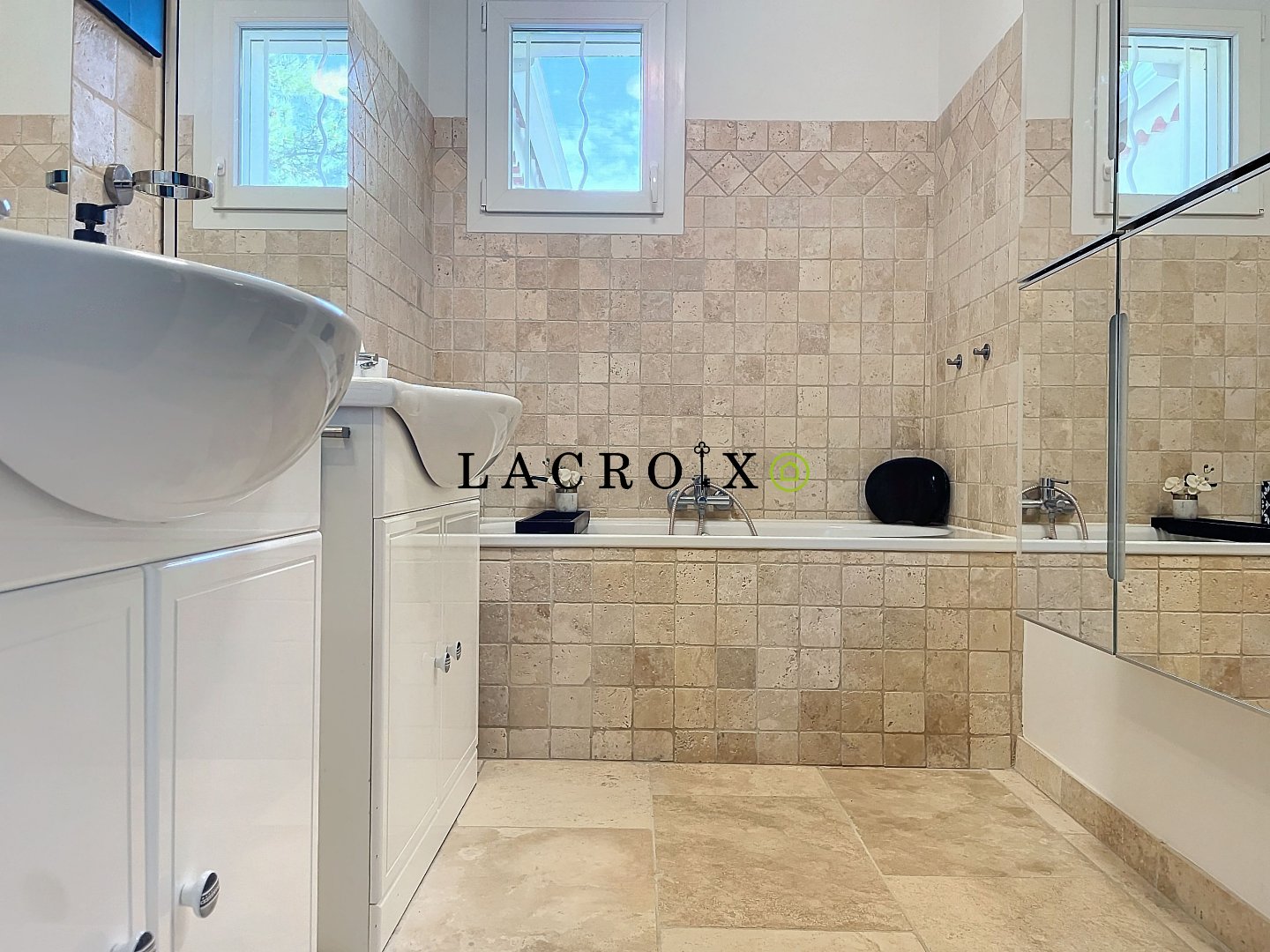 – Une rénovation complète et soignée : isolation extérieure et intérieure, menuiseries aluminium, climatisation réversible gainable, sols en travertin, peintures, électricité, cuisine sur mesure et toiture refaite