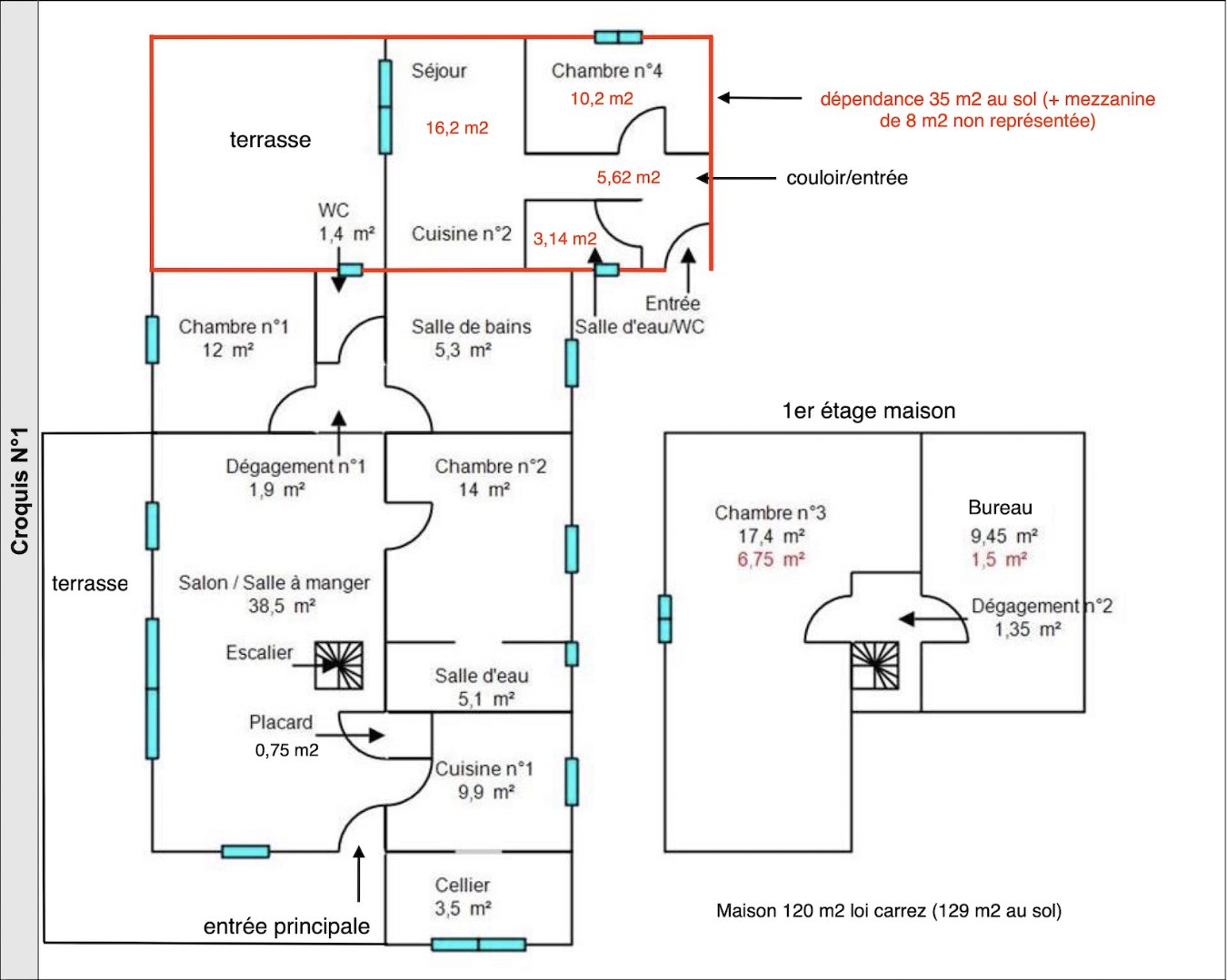 Maison principale : 120 m² habitables (130 m² surface utile)