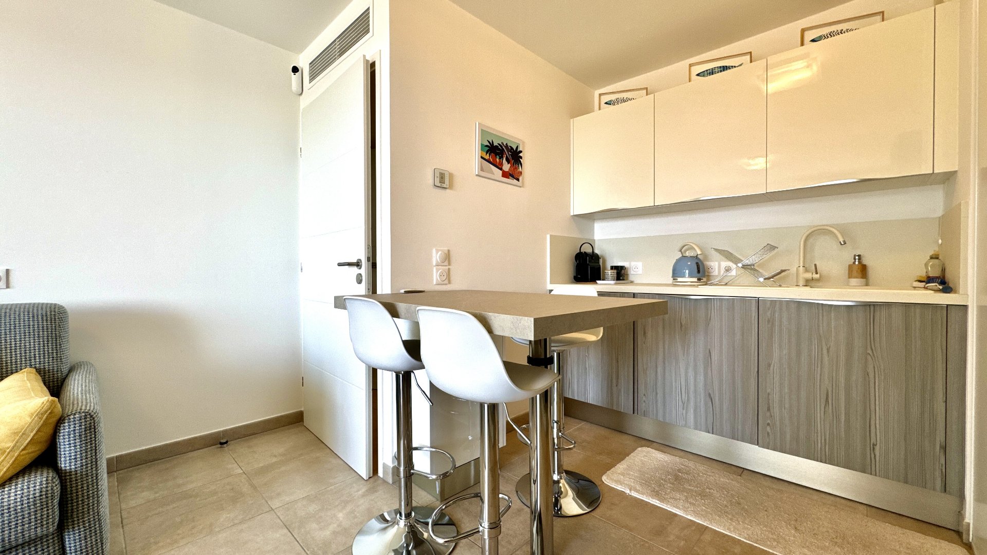 – Séjour lumineux avec cuisine américaine équipée