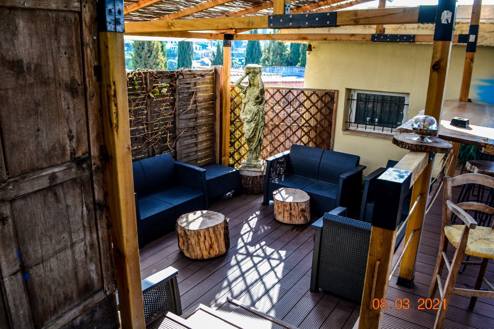 Emplacement de choix sur un axe circulant, avec 4 places de parking privées et une grande terrasse aménagée et couverte de 50 m².