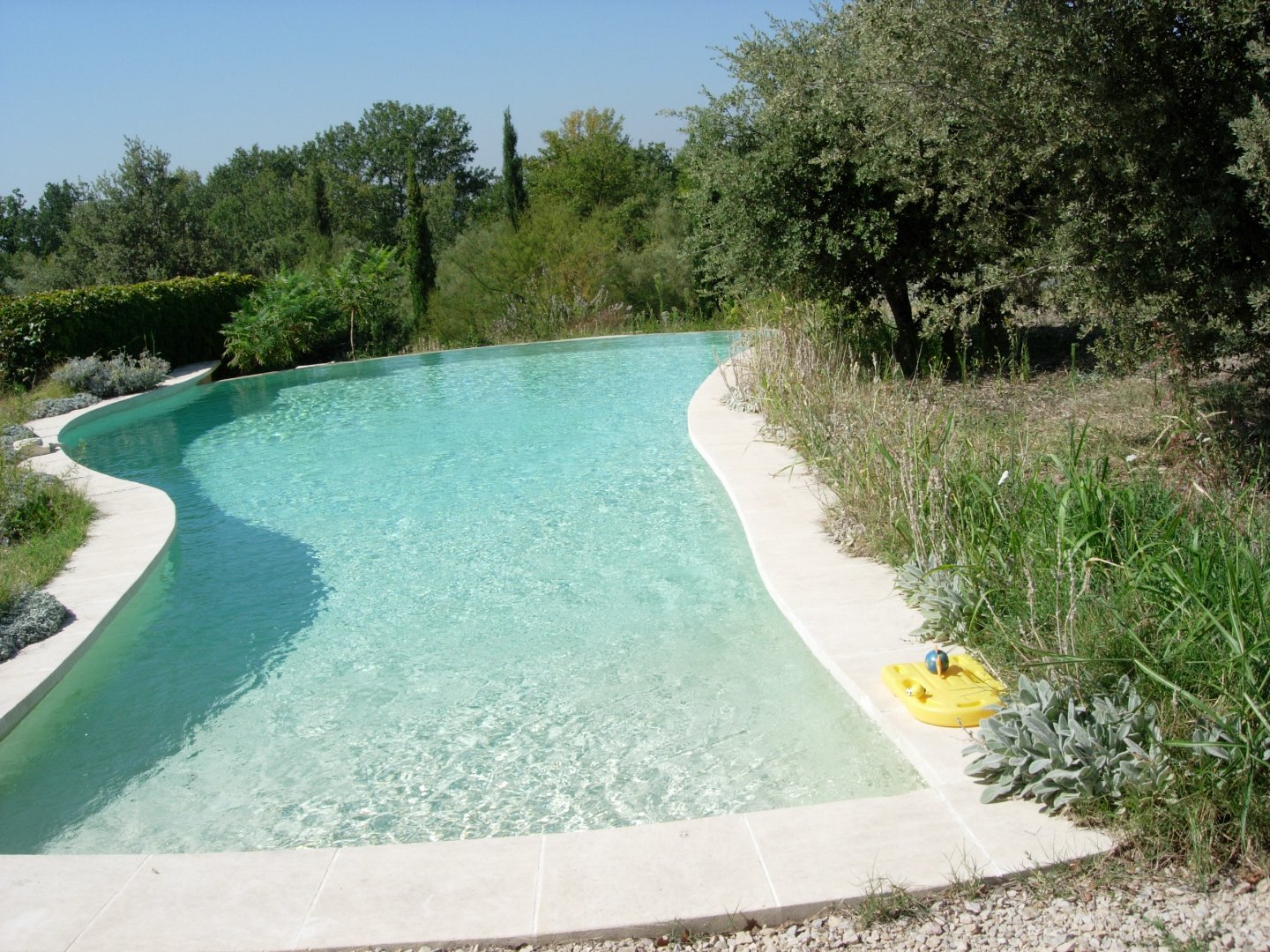 un parc méditerranéen planté d’oliviers, cyprès, grenadiers, tilleuls et chênes majestueux, agrémenté de deux piscines maçonnées, dont une à débordement pour des moments de détente inoubliables.