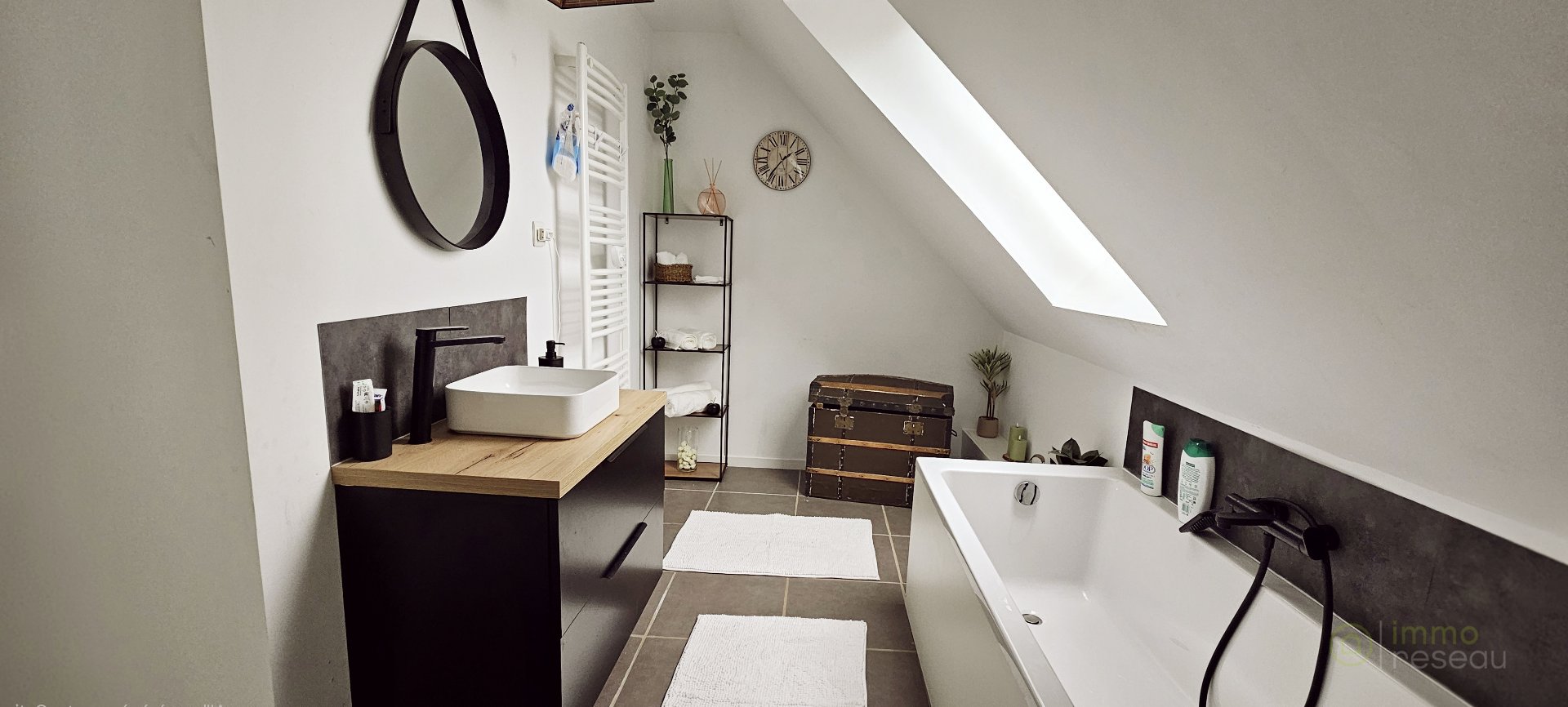 A l’étage, vous trouverez 3 chambres supplémentaires, une salle de bain ainsi qu’un second WC indépendant.