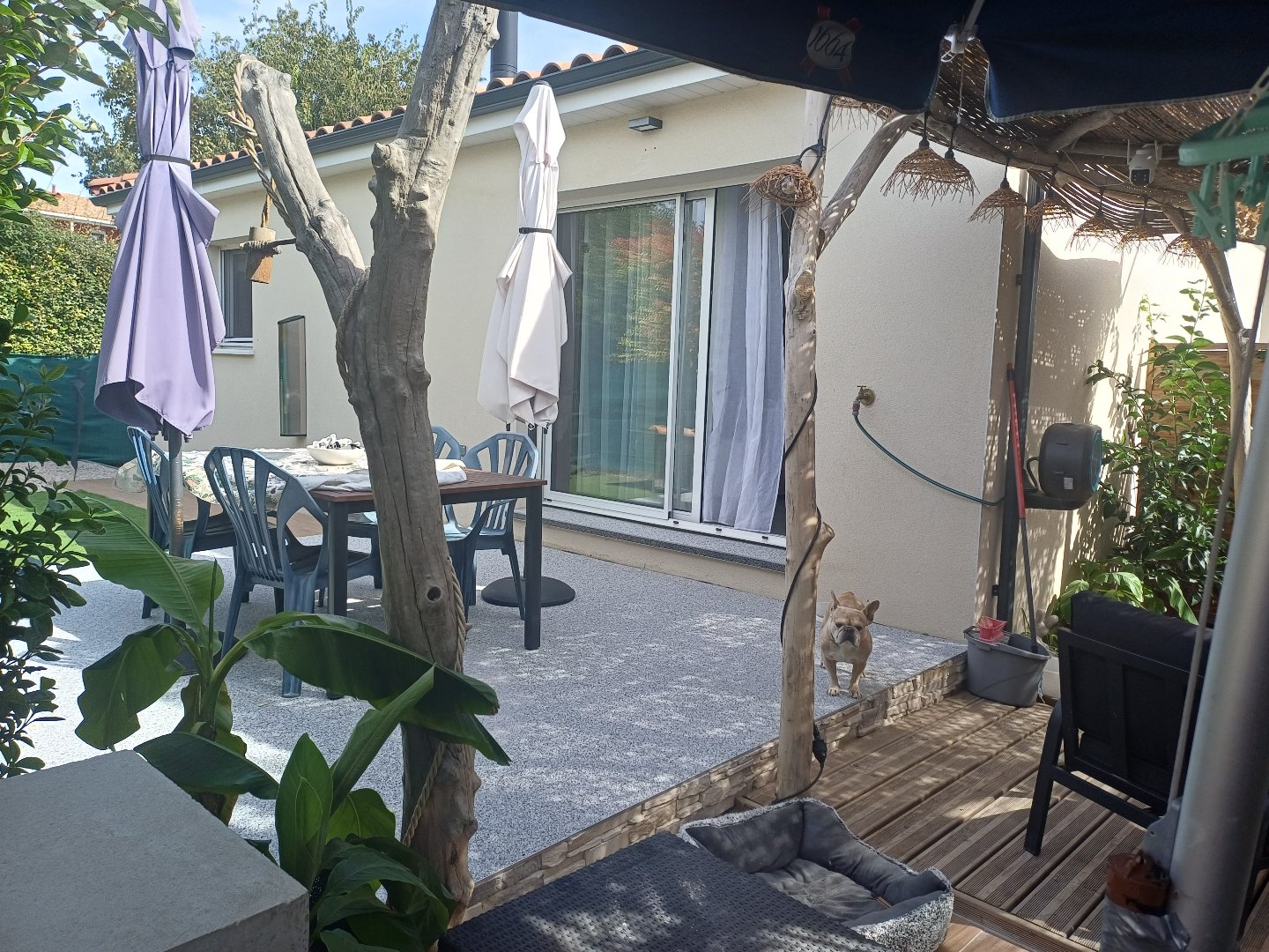 A l’extérieur un coin détente avec BBQ et une grande terrasse ainsi qu’un coin jardinage.