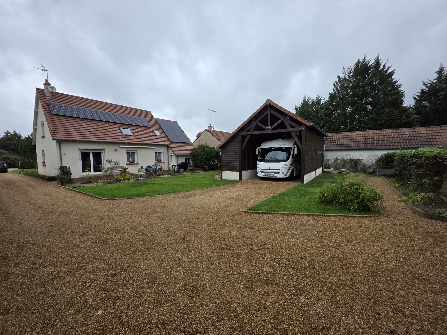 Côté extérieur, la maison profite d’un cadre sans vis-à-vis : terrasse bois avec store banne électrique, garage camping-car de 32 m² (hauteur 3 m, longueur 8 m), deux box fermés d’environ 17 m² chacun, deux dépendances, un auvent couvert de 33 m². L’allée carrossable renforcée facilite l’accès aux camping-cars. Le tout est raccordé au tout-à-l’égout.