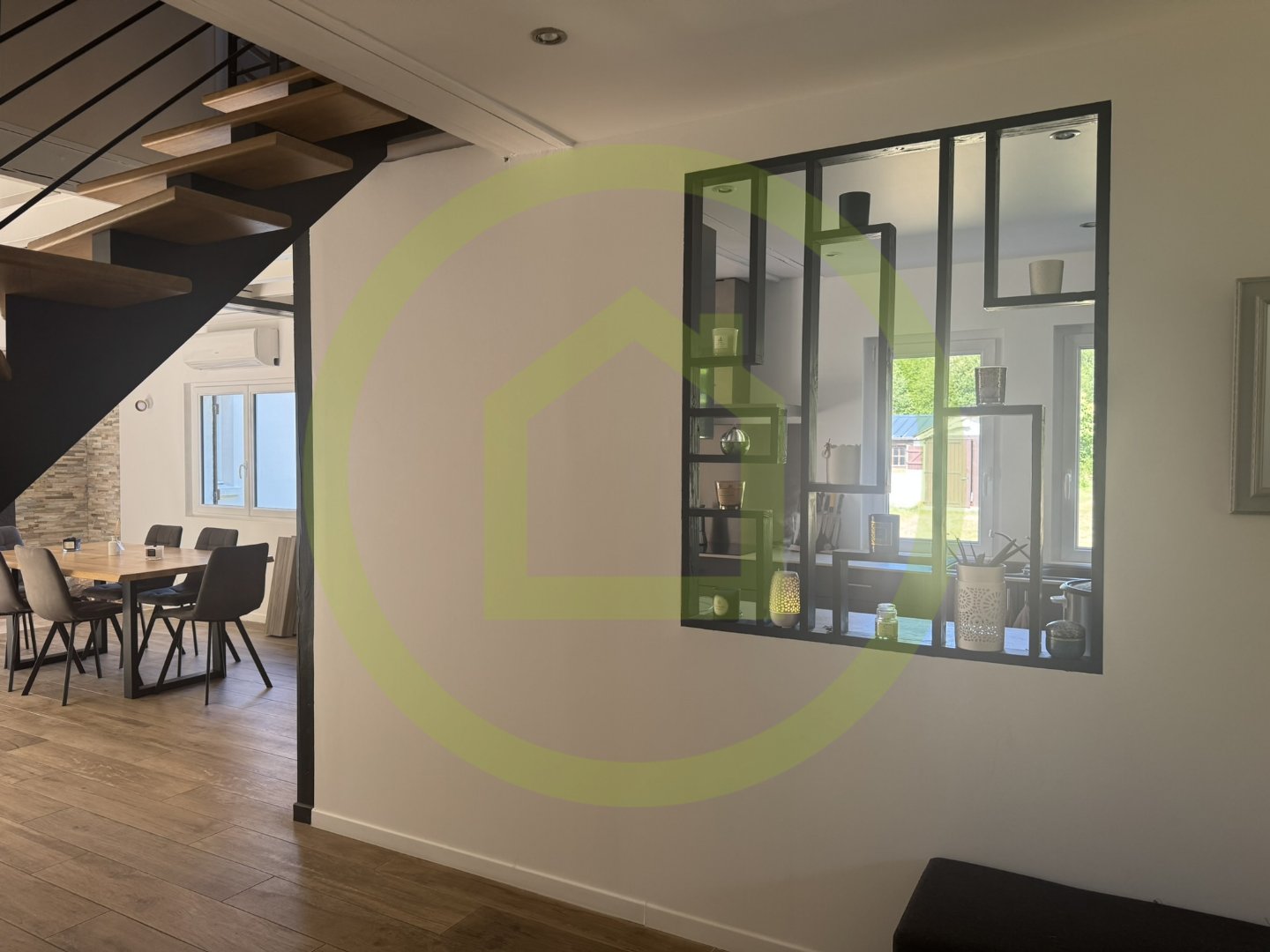 Le rez-de-chaussée s’ouvre sur une entrée accueillante mendant à un vaste séjour tranversant et lumineux, réunissant un salon chaleureux et une cuisine contemporaine entièrement équipée.