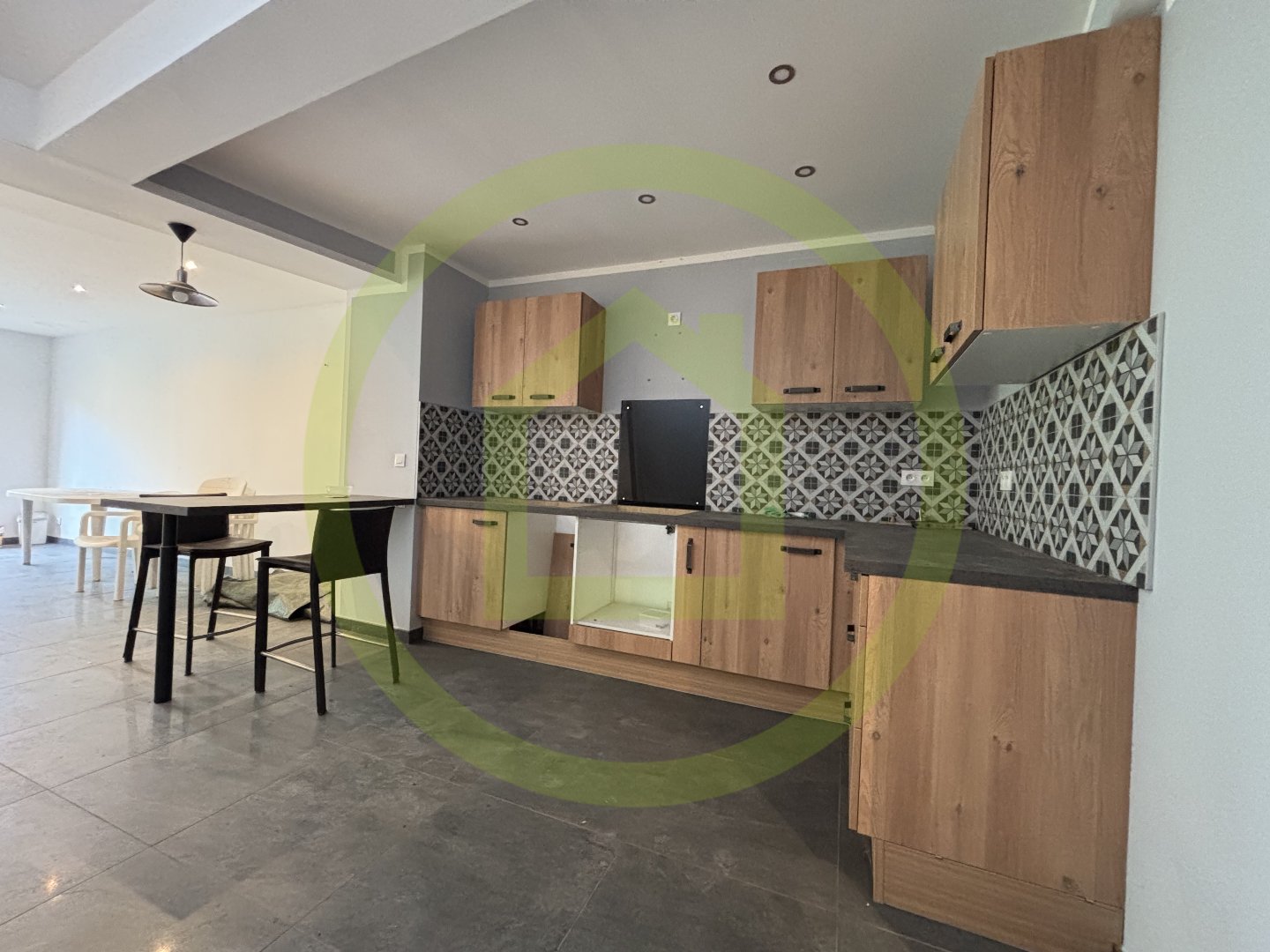 – Rez-de-chaussée : entrée, salle d’eau avec WC, cuisine aménagée et ouverte sur séjour lumineux avec baie vitrée donnant accès au jardin