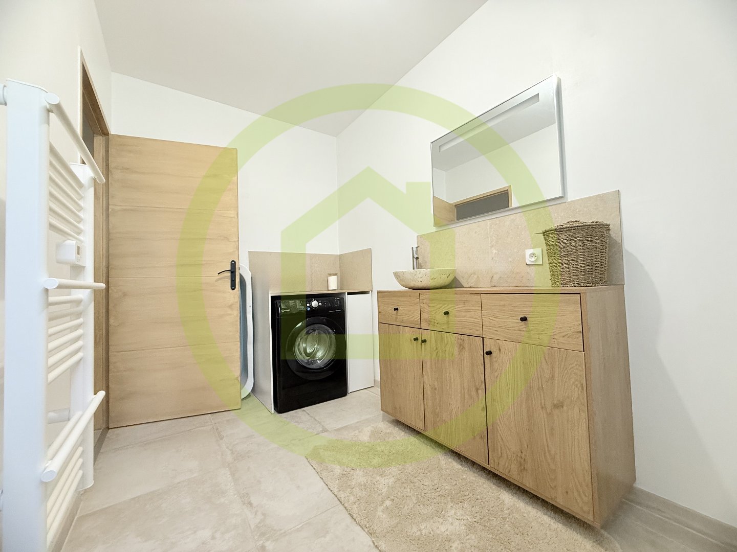 A l ‘extérieur, profitez d’une terrasse de 30 m2 équipée d’ un store éléctrique ainsi qu’un garage et 1 place de parking privatives sur 277m2 de terrain.