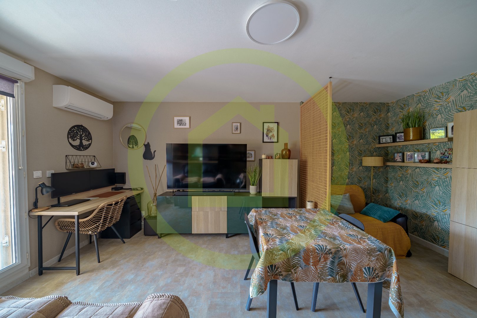 L’entrée distribue un séjour lumineux avec cuisine ouverte, prolongé par une terrasse et un jardin privatif de plus de 50 m², offrant un extérieur agréable, abrité et facile d’entretien.