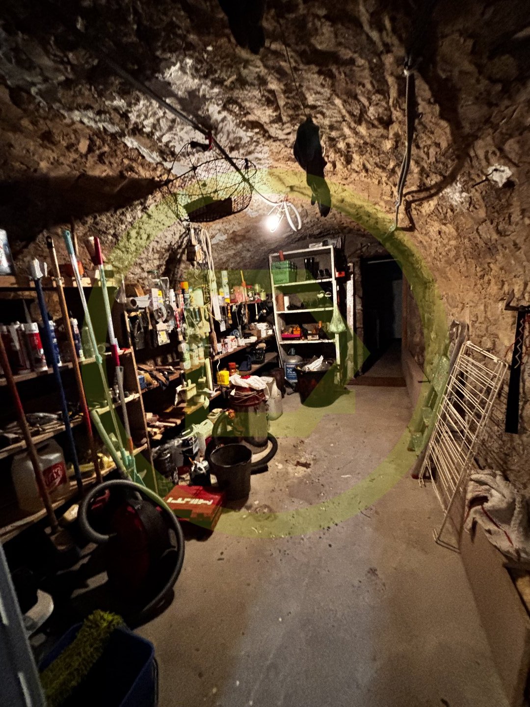 Une cave voutée accolée est organisée en local technique (chauffe eau électrique), en cellier et au bout en chaufferie buanderie avec WC.