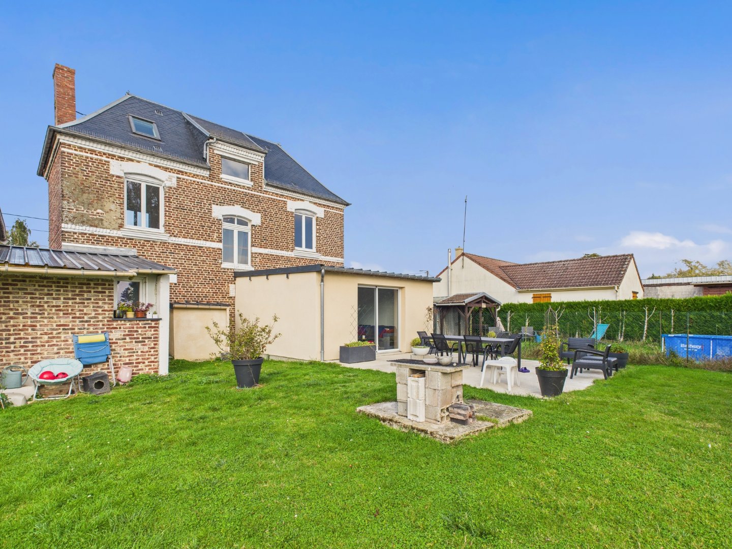 Côté confort : pompe à chaleur air/eau, ballon thermodynamique, cheminée à foyer fermé, portail motorisé.