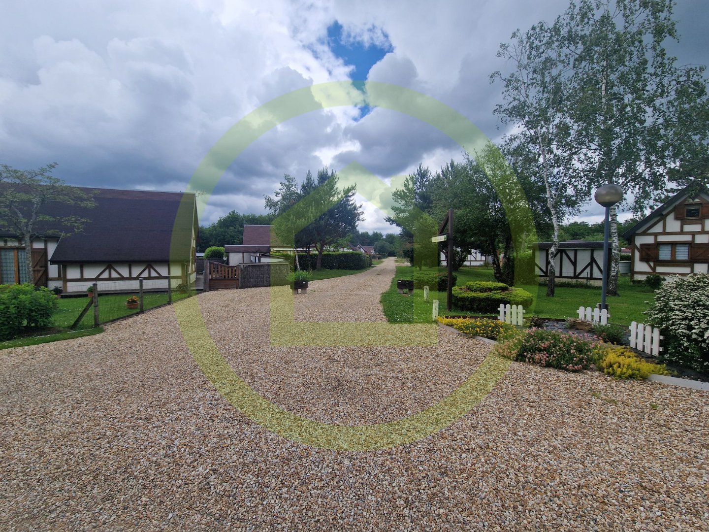 En Sologne, dans parc résidentiel sécurisé (gardien, portail électrique, caméras) et arboré, chalet de 2002 de 4 pièces principales, en bon état.