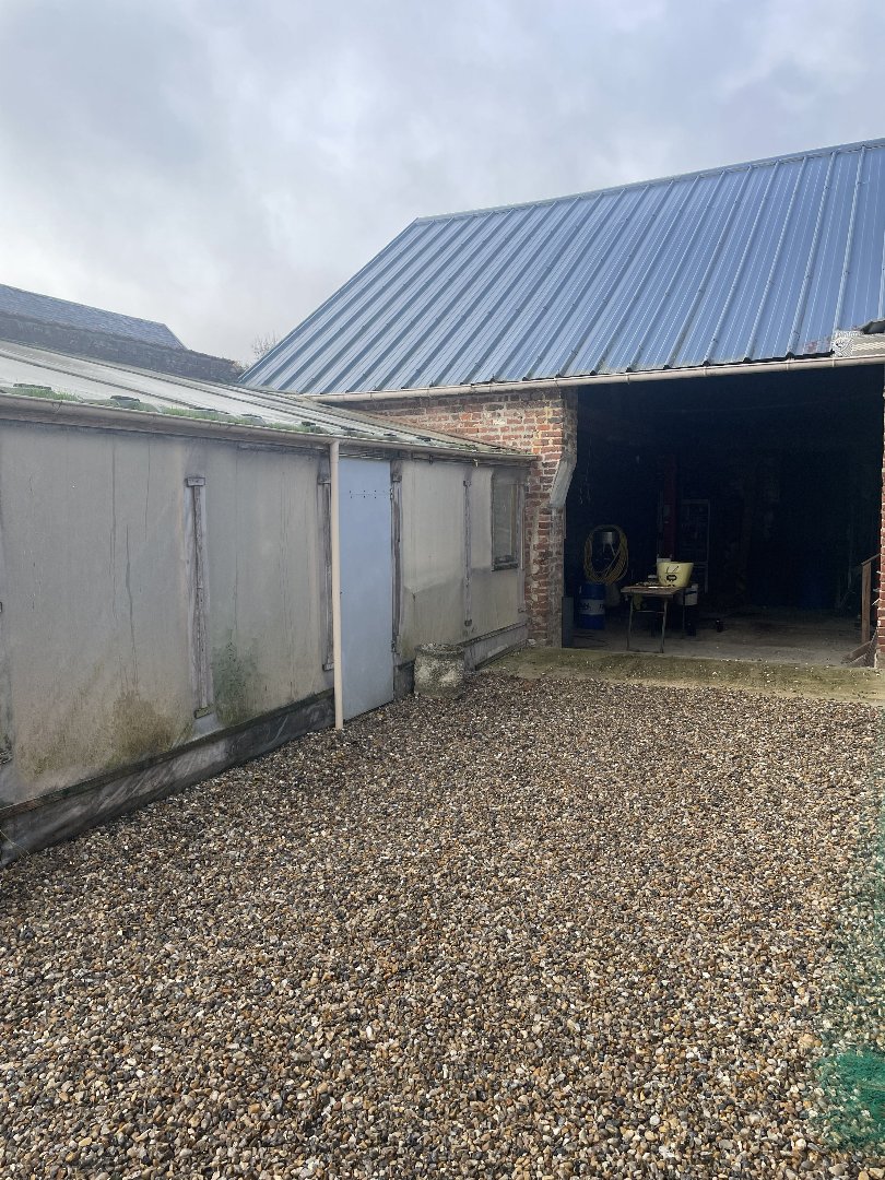 A l’arrière de la maison, une cour gravillonnée avec serre, abri pour salon de jardin et dépendances vous raviront.