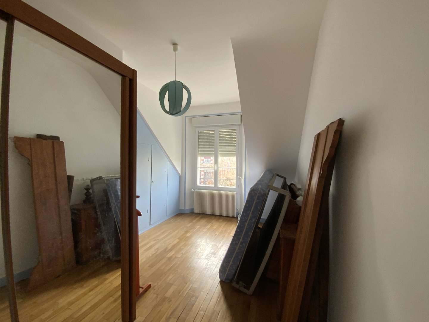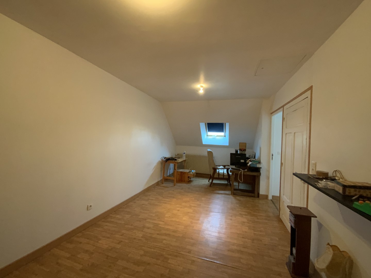 A l’étage, un petit palier, deux chambres, une salle d’eau WC et un grenier aménageable.