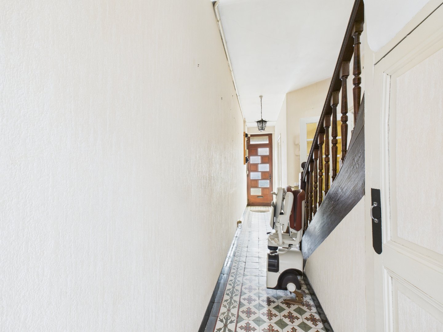 Dès l’entrée, un élégant couloir décoré de carreaux de ciment d’époque, doté d’un escalier équipé d’un monte-escalier motorisé.
