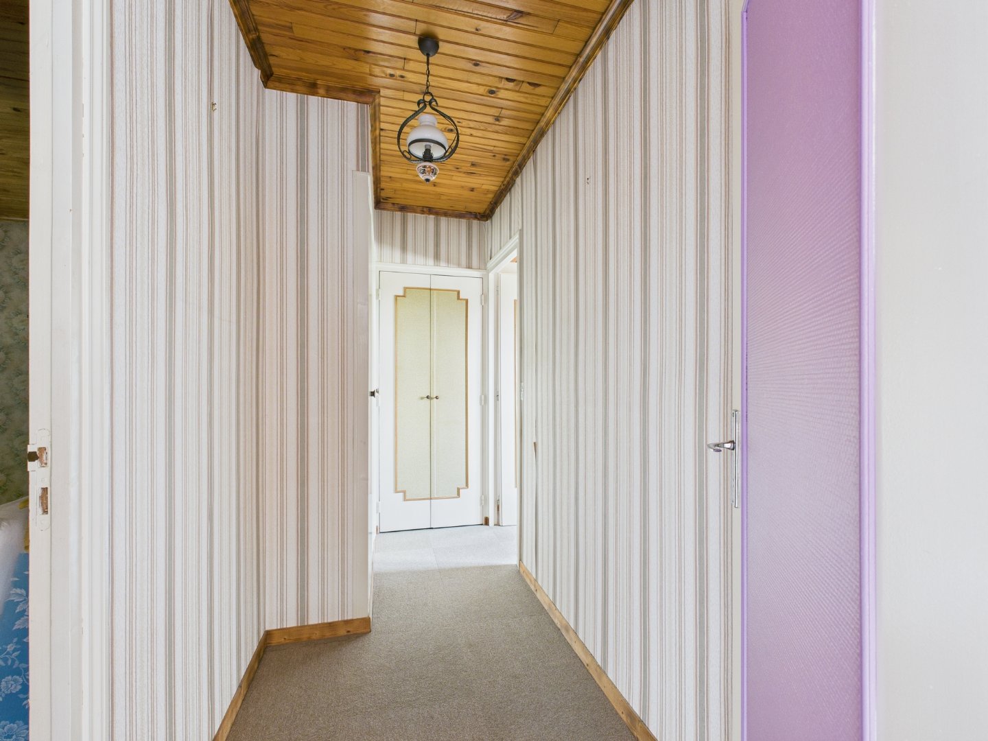 Ce couloir mène vers une cuisine lumineuse et fonctionnelle, attenante à une pièce de vie regroupant salon et salle à manger, idéale pour les moments de convivialité.