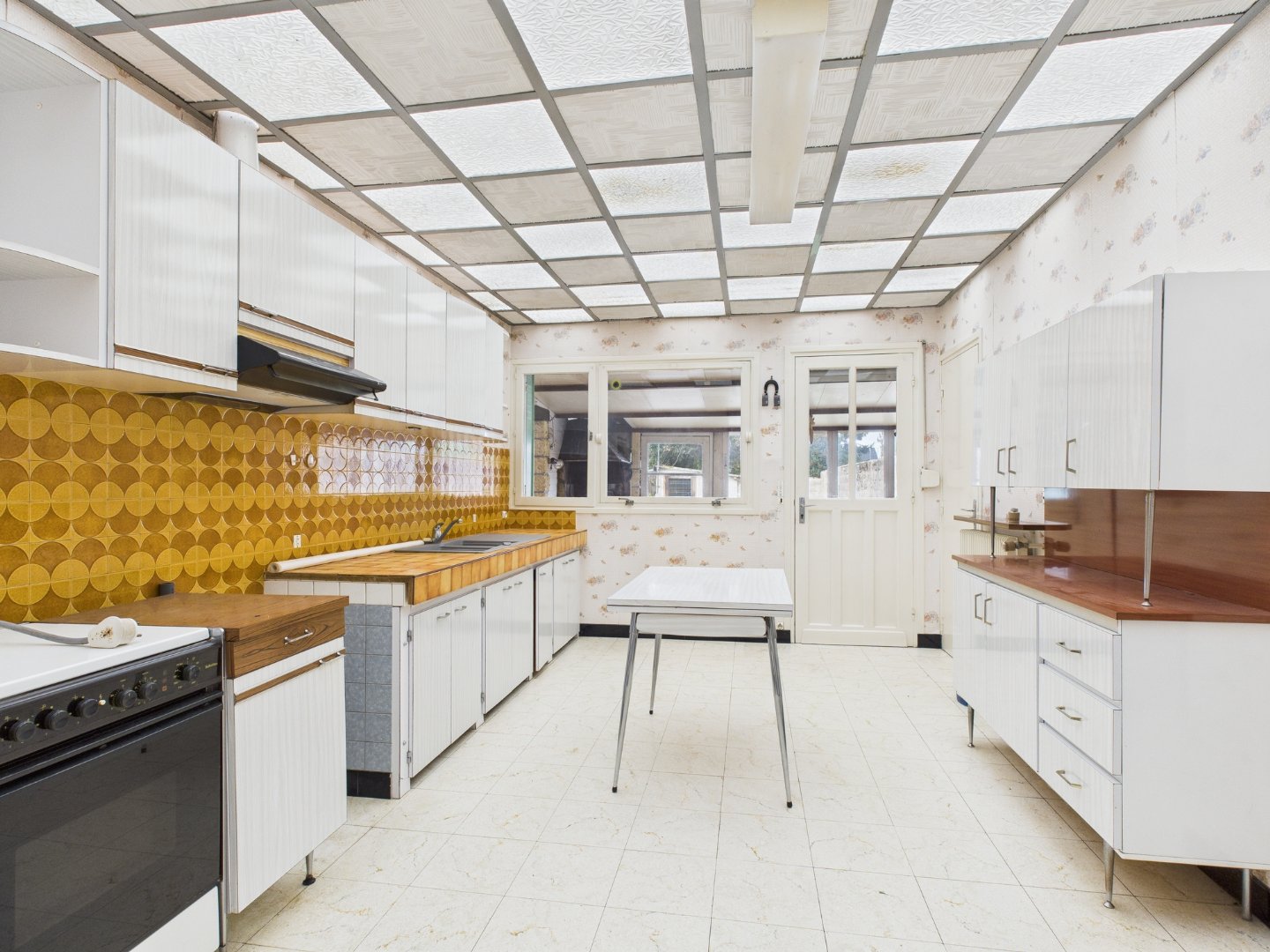 La cuisine s’ouvre sur une agréable véranda équipée d’un petit coin barbecue, offrant un accès direct au jardin verdoyant.