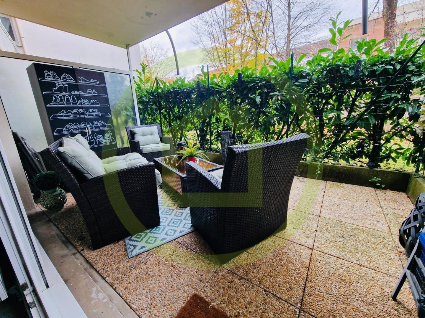 Vous pourrez profiter d’une belle terrasse de 9 m² (aucun vis à vis), baie vitrée avec store électrique donnant sur les jardins de la copropriété.