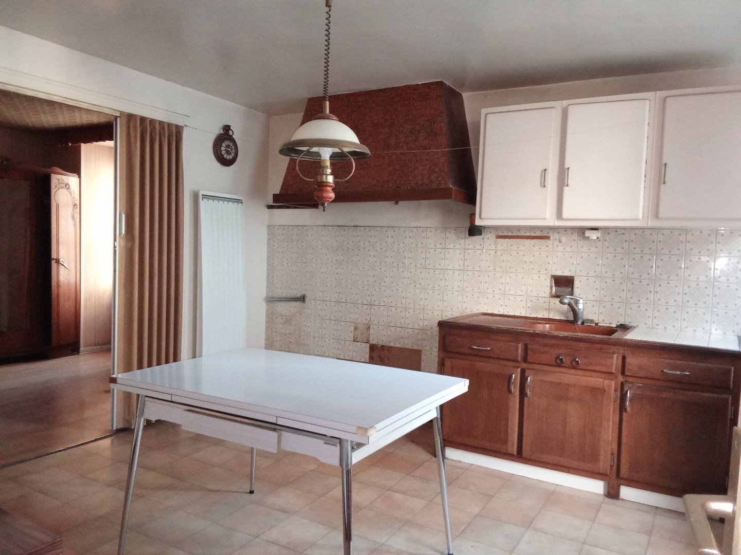 La maison est composée d’une cuisine, un salon, un séjour avec cheminée et accès a une terrasse couverte, une salle d’eau et une cave de 20m².