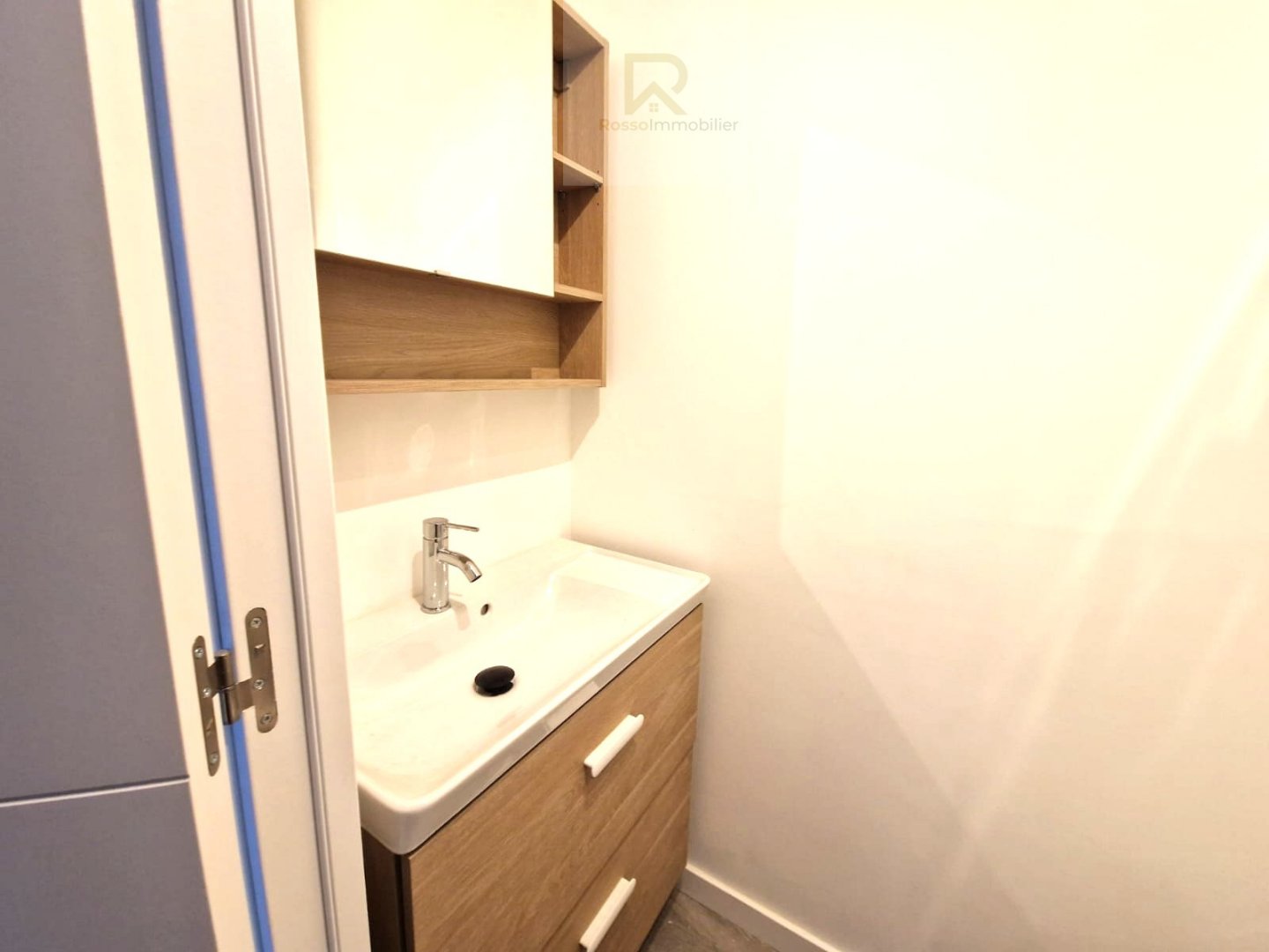 Dès l’entrée, un couloir avec rangements intégrés vous mène vers une pièce de vie lumineuse, sublimée par une cuisine américaine entièrement équipée.