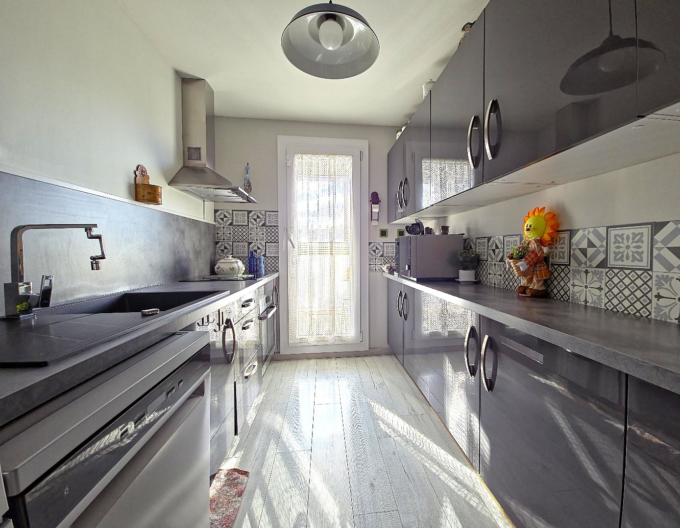 La terrasse communique avec une cuisine indépendante rénovée, formant un ensemble fluide et agréable au quotidien.