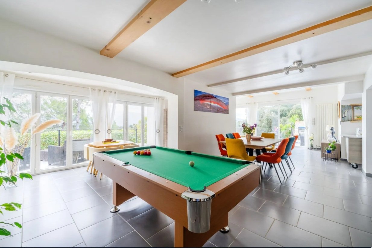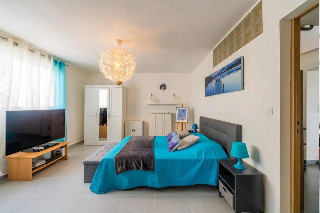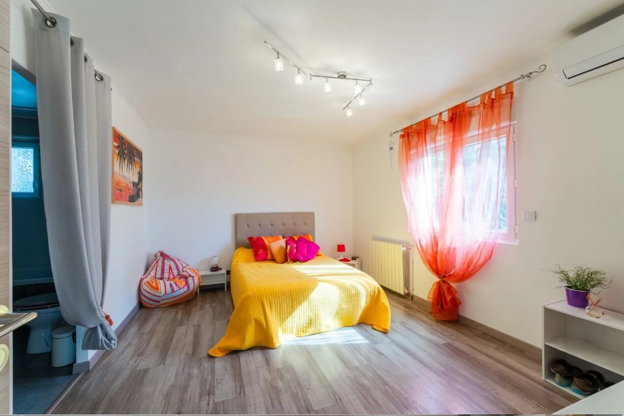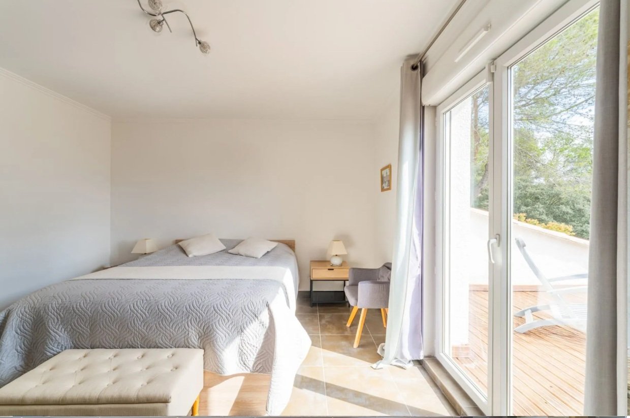 À l’étage, deux suites parentales supplémentaires viennent compléter l’ensemble. Chacune dispose de son accès extérieur indépendant, donnant sur une terrasse privée, un atout rare qui garantit intimité et confort. Un second studio entièrement indépendant complète la propriété et permet d’envisager facilement une activité de location saisonnière ou des revenus complémentaires.