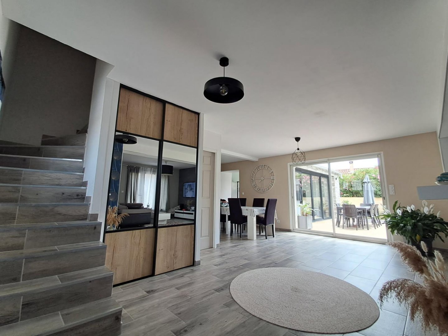 Cette construction de 2011, entièrement repensée et rénovée au goût du jour vous offre une très belle pièce de vie de 55m², une sublime cuisine très claire et très lumineuse de 18,45M², 1 WC en RDC et 1 garage