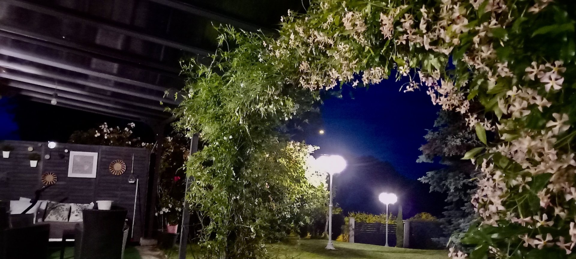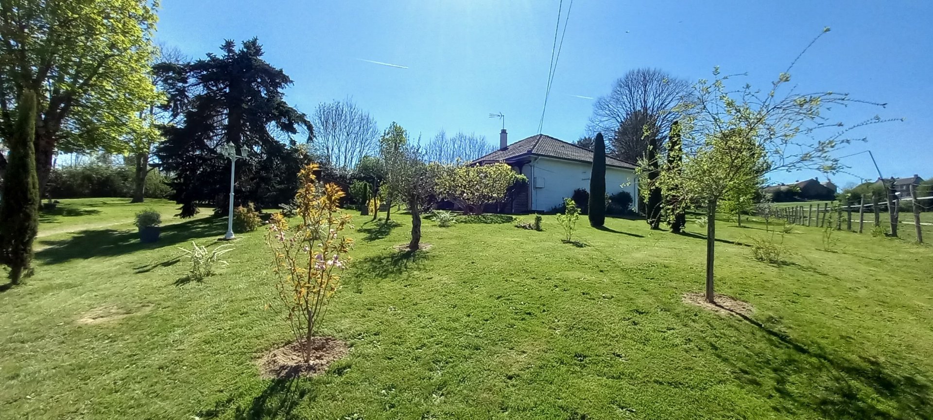 À l’extérieur, le terrain clos et paysager de 3 868 m² constitue un véritable atout. Parfaitement entretenu et arboré de nombreux arbres fruitiers, il offre un environnement sans vis-à-vis et une vue dégagée sur les alentours, propice à la détente et à l’évasion.