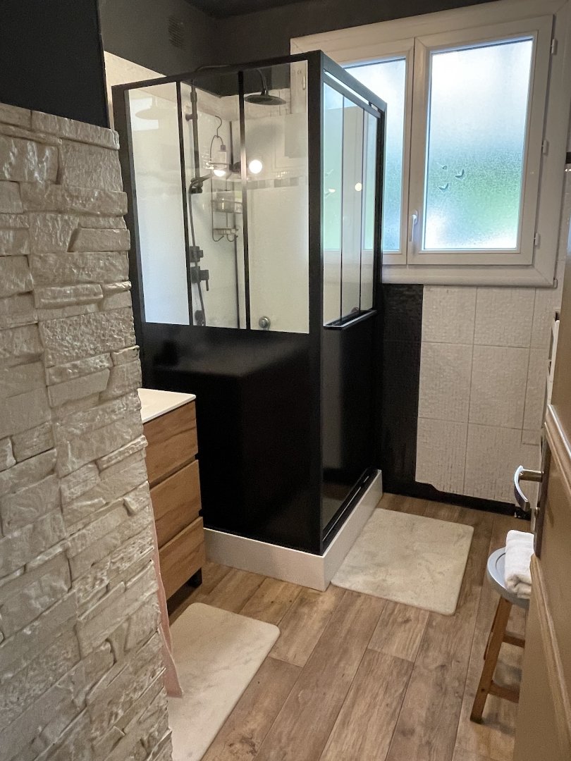 L’intérieur, entièrement rénové dans un style contemporain, a été pensé pour optimiser les espaces et le confort. Vous y trouverez une cuisine aménagée et entièrement équipée, ouverte sur un séjour traversant, lumineux et chaleureux, agrémenté d’un poêle à granulés neuf. Cet espace de vie est idéal pour les moments de détente comme pour recevoir.
