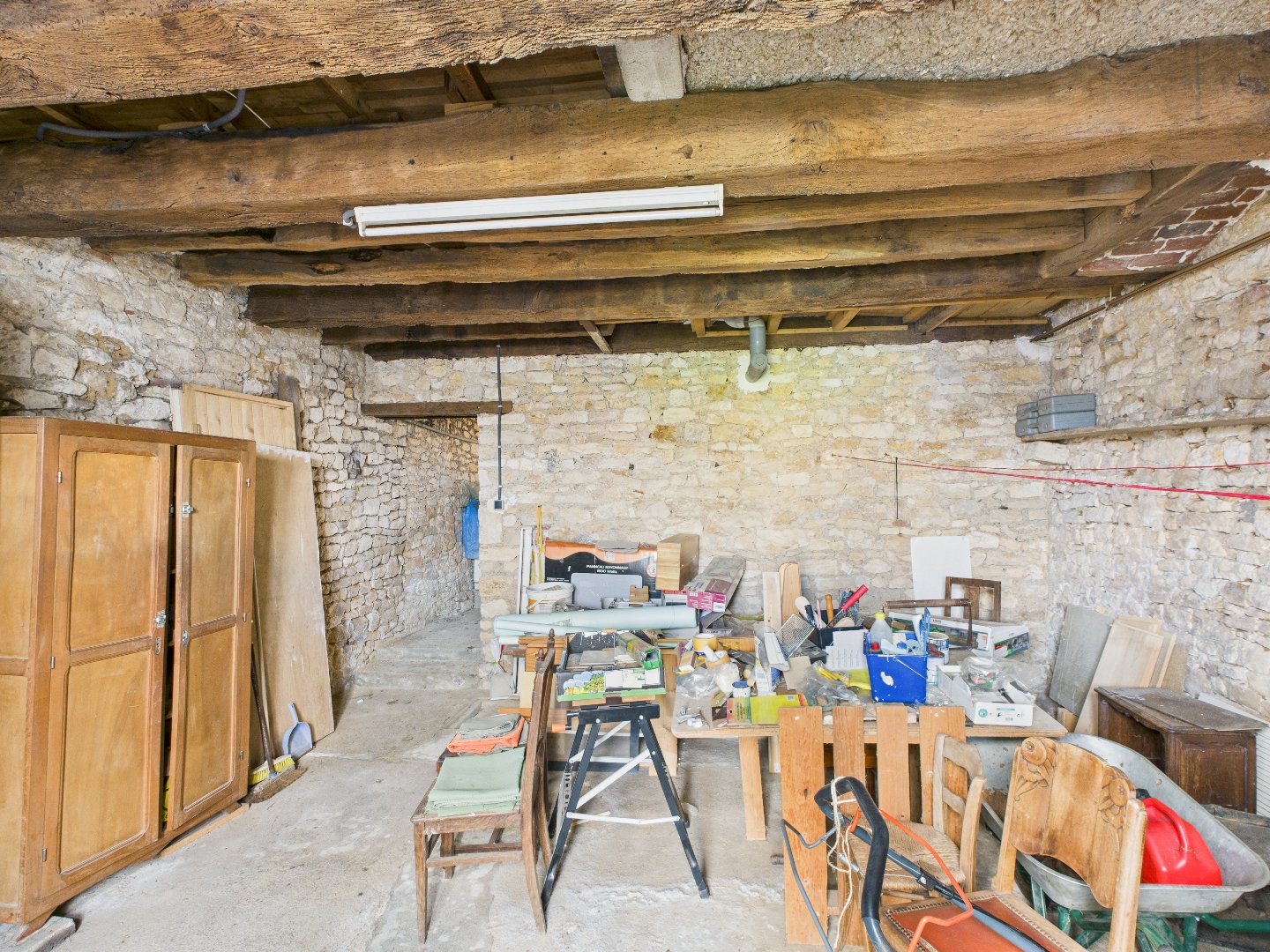 La maison dispose d’un sous-sol sur toute la surface, permettant un accès direct au jardin situé à l’arrière et offrant des possibilités de stockage ou d’aménagement complémentaires.