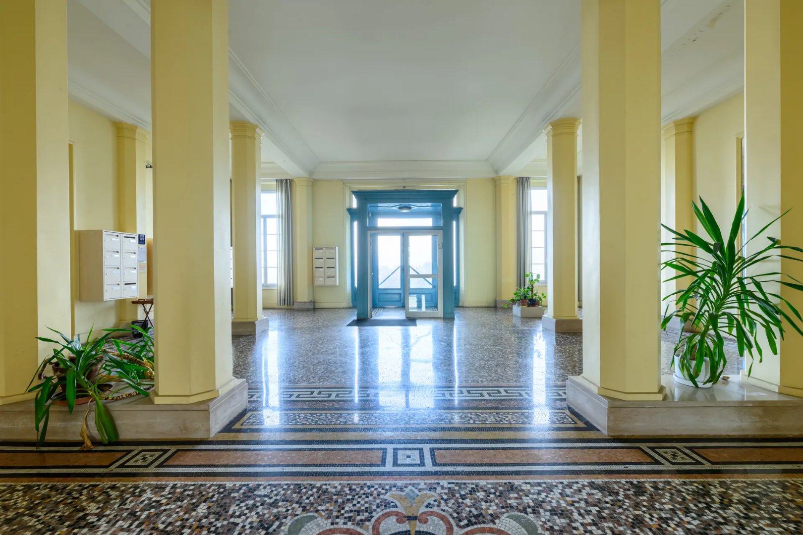 Situé en rez-de-chaussée surélevé,et son hauteur sous plafond, typique des grands édifices historiques, cet appartement bénéficie d’une belle luminosité privilégiée et une vue sur la mer. . Le Charme de l’Ancien est au rendez vous : Dès l’entrée, vous serez séduit par son caractère authentique, son parquet massif et ses volumes majestueux :