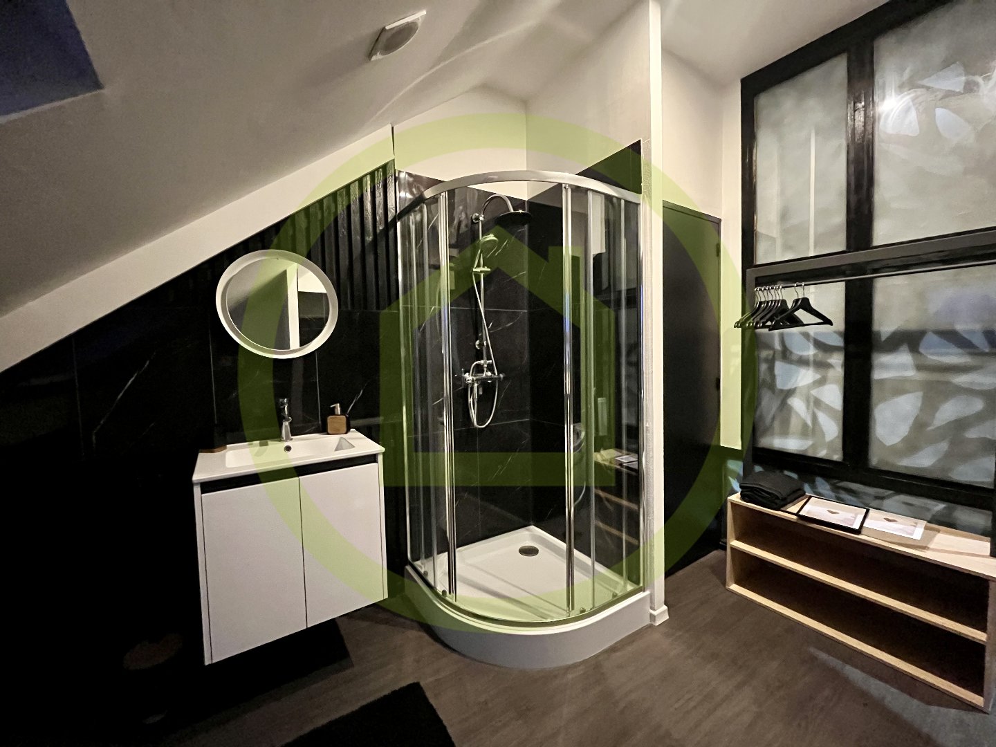 – Pièce de vie avec cuisine ouverte, chambre, salle de bain balnéo avec WC. Idéal pour Airbnb ou location meublée.