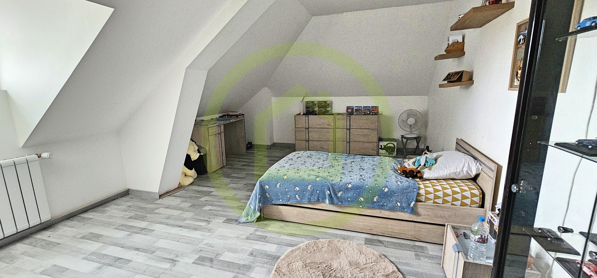 Au rez-de-chaussée, une grande pièce de vie lumineuse s’ouvre sur une cuisine aménagée. Ce niveau comprend également trois chambres, une salle de bain et un WC indépendant.