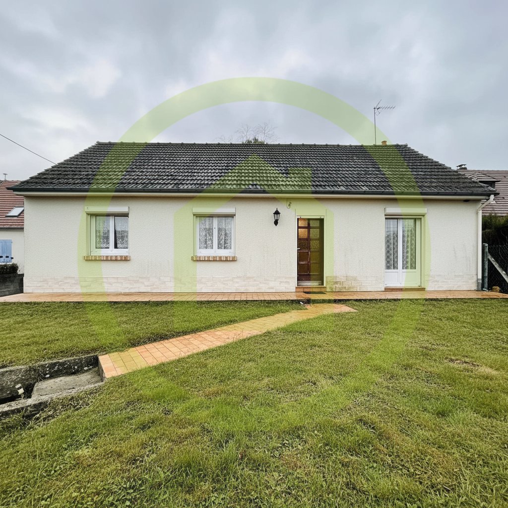 Ce pavillon de plain-pied d’environ 88m2 habitable est composé d’une entrée, d’un double séjour avec insert bois, d’une cuisine, de 3chambres, d’une salle d’eau et de WC séparés.