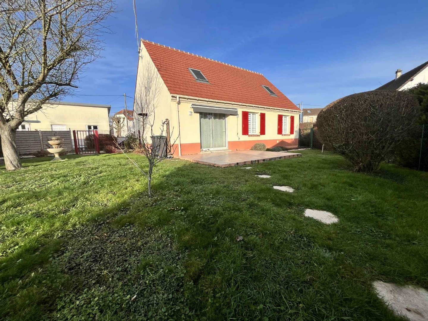 Cour privée avec 2 places de stationnement. A l’arrière, jardin clos d’environ 289m2 avec terrasse, pelouse et cabanon de jardin. Extérieur simple, fonctionnel et facile d’entretien.