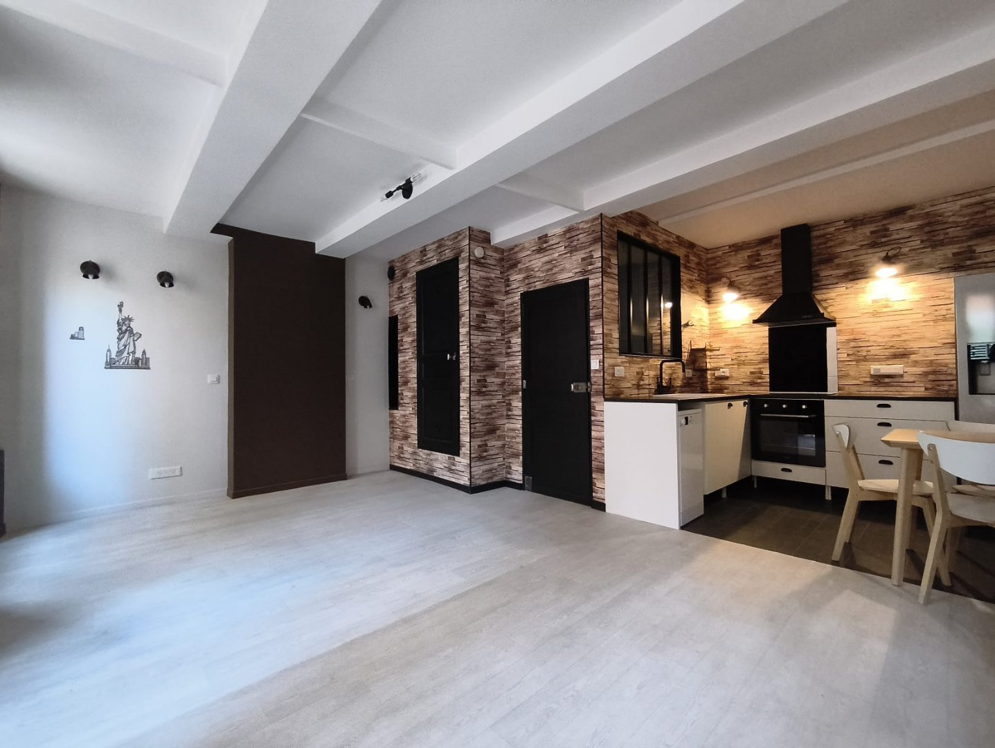– 1er étage : belle pièce de vie avec cuisine, salon et salle à manger