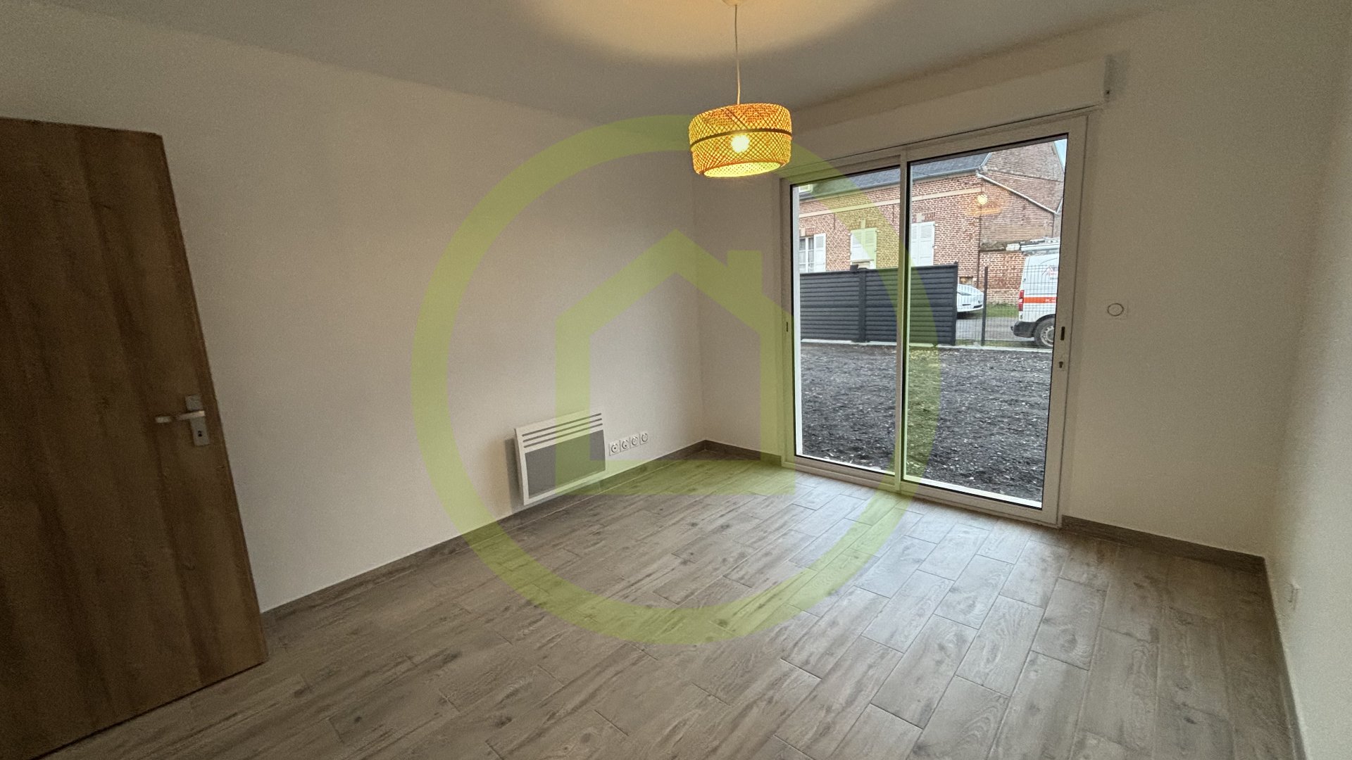 Au rez-de-chaussée, une entrée ouvre sur une vaste pièce de vie lumineuse, avec emplacement prévu pour l’installation d’une cuisine selon vos envies.