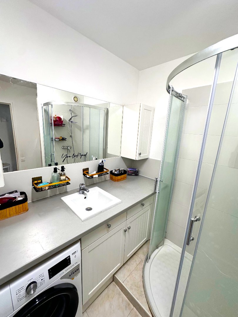 Charmant 2 Pièces bien aménagé, de 36,5m2 en rdc traversant est-ouest, joliment décoré est composé d’un séjour de plus de 20m2 avec cuisine intégrée meublée et équipée et attenant à une terrasse de 8m2, d’une entrée, d’une chambre lumineuse avec lit et dressing et une vue dégagée, d’une salle de douche contemporaine.