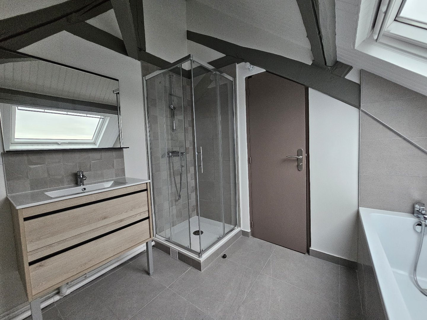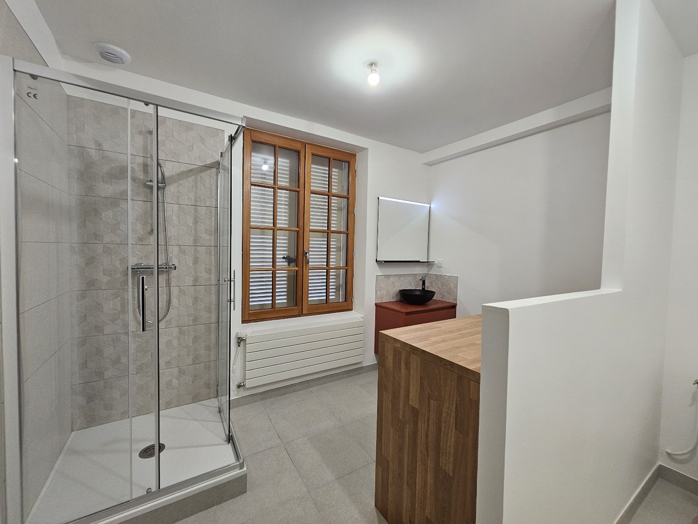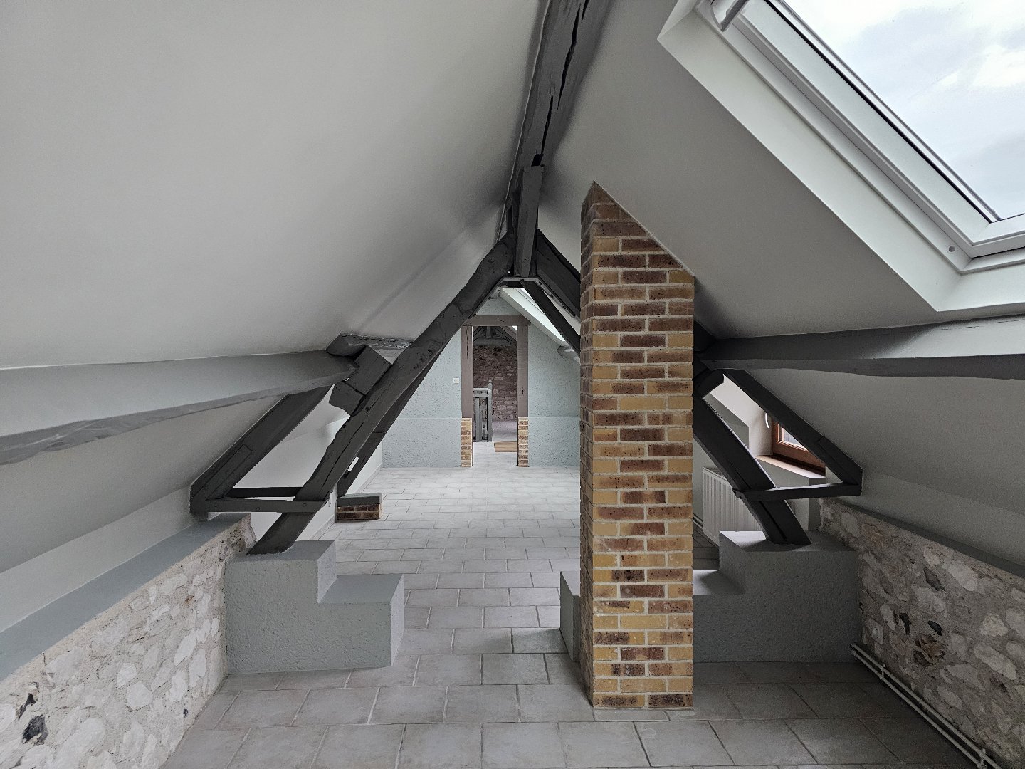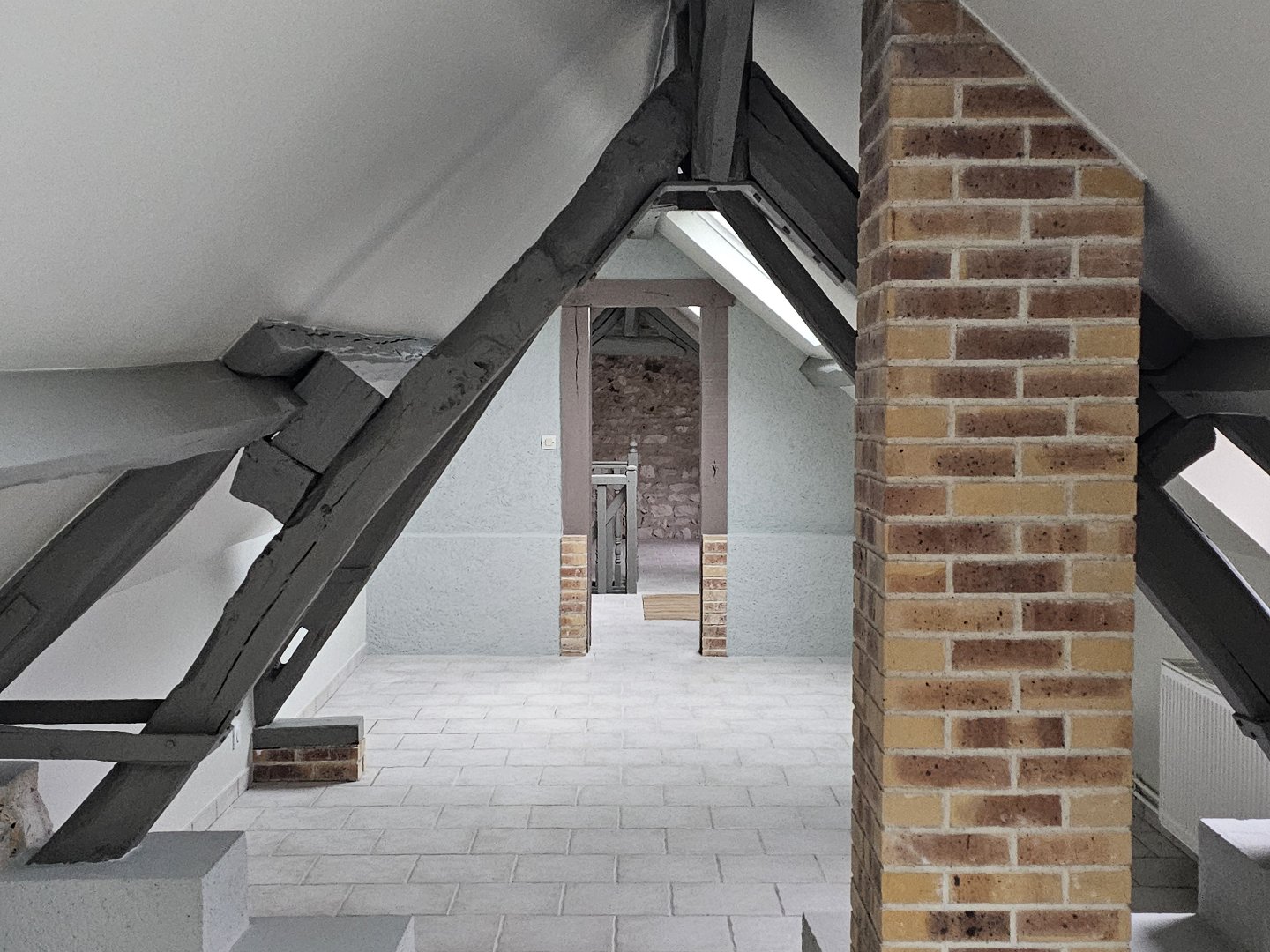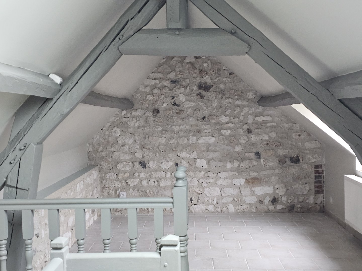 – habitation indépendante avec au rdc une pièce de vie avec cuisine, salle d’eau et wc, à l’étage trois pièces en enfilade