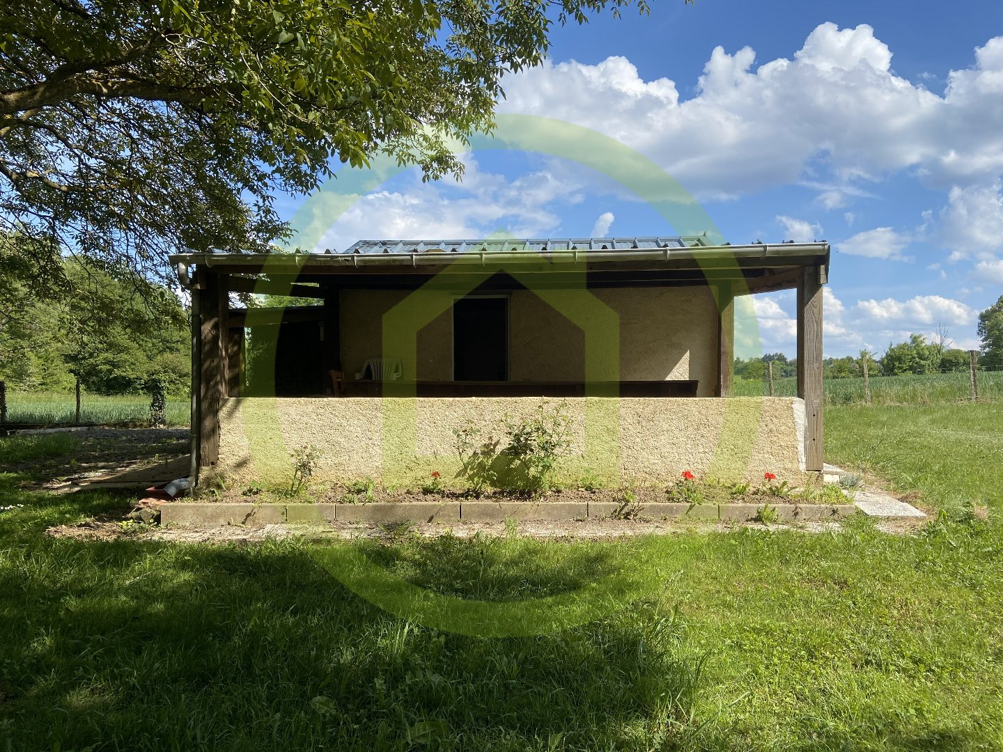 sur terrain arboré accessible par un chemin de desserte agricole.
