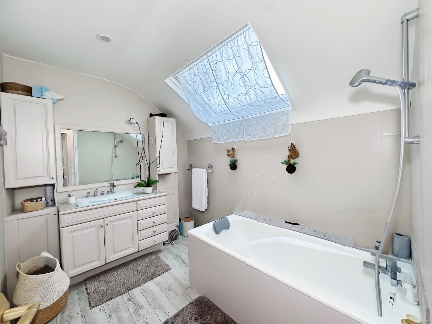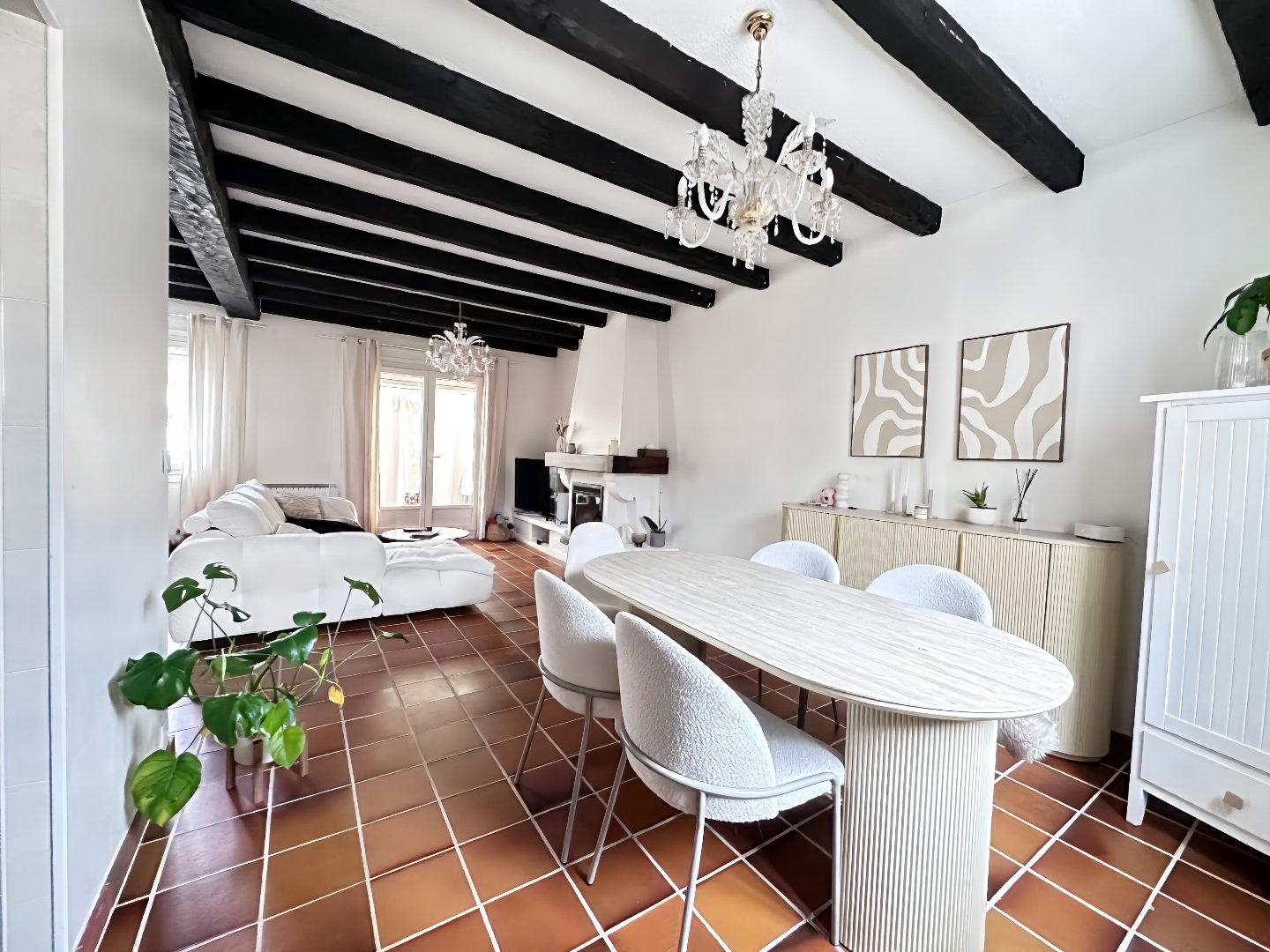 le séjour, chaleureux et lumineux, dispose d’une cheminée fonctionnelle.Idealement situé à proximité des transports, des écoles et comodités, elle benificie également d’un accés immediat à un vaste parc, parfait pour les promenades et la detente.