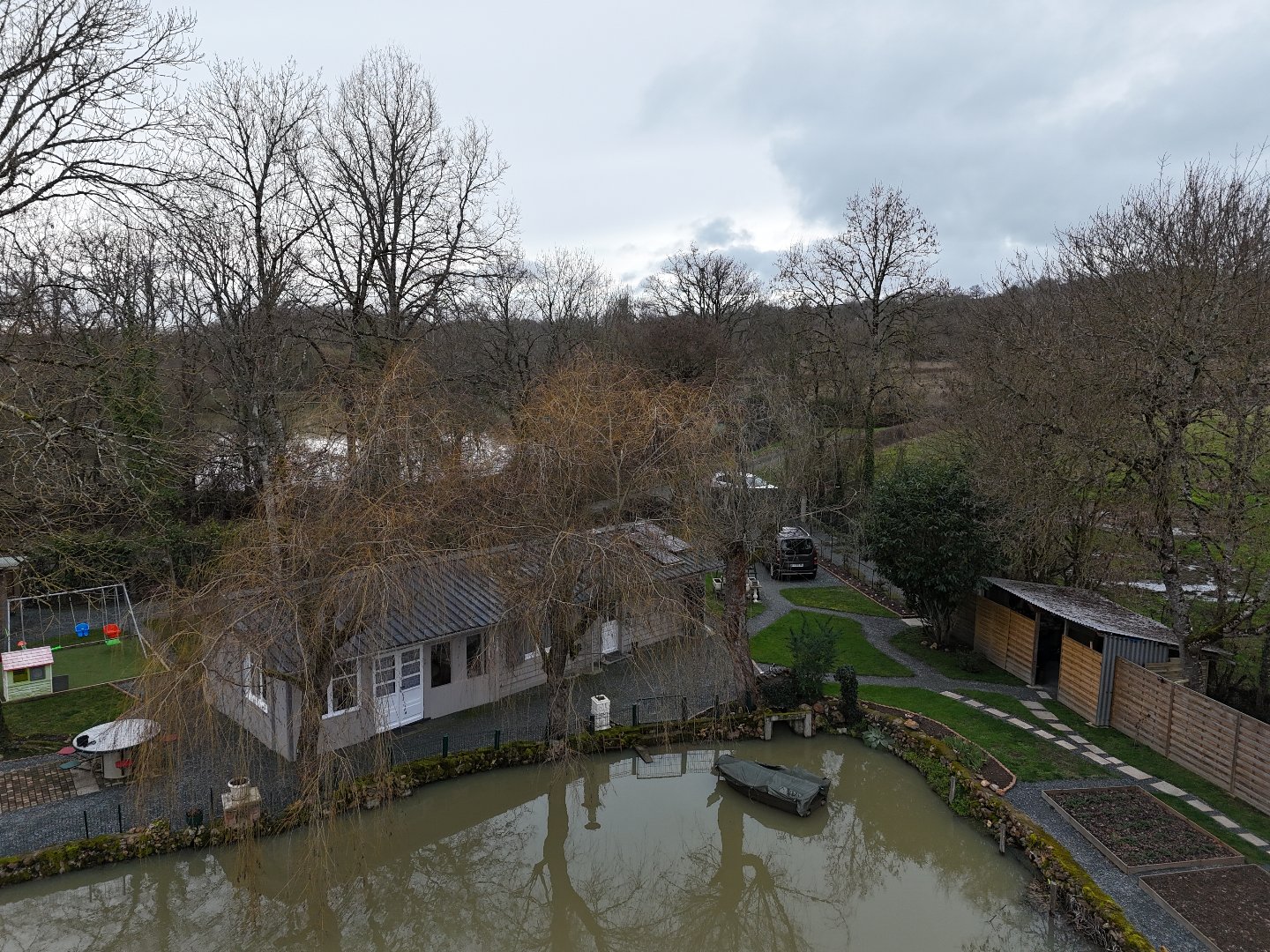 Autour de l’étang, vous découvrirez des parcelles de jardin prêtes à l’emploi, agrémentées de magnifiques arbres d’ornement et d’arbres fruitiers, le tout sans aucun vis-à-vis, garantissant une tranquillité absolue.