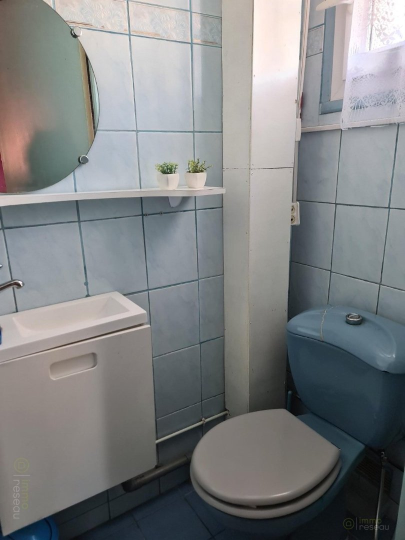 Vous rentrez par un étage surélevé, avec cuisine toute équipée, séjour double donnant directement sur le jardin, et wc avec lave mains.