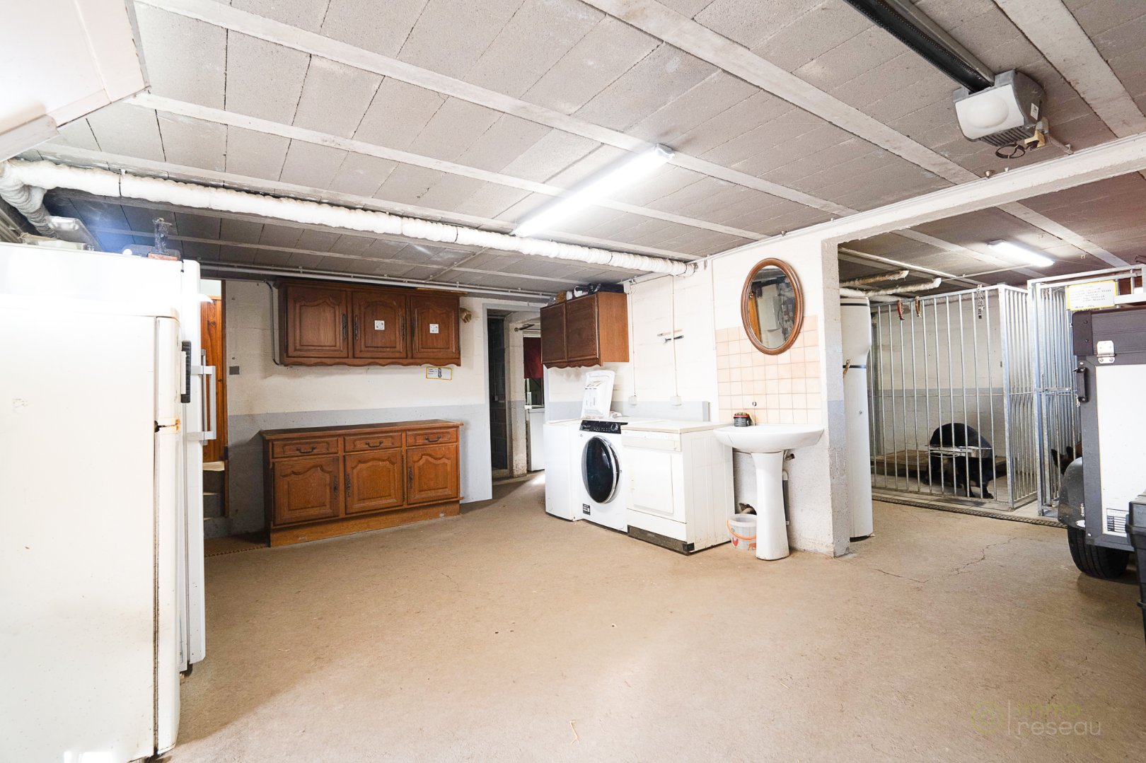 Le sous-sol est composé d’un vaste garage pouvant accueillir plusieurs voitures et d’un grand cellier.