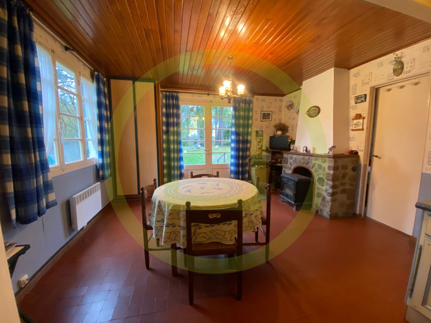 A l’intérieur, une ambiance chaleureuse avec un feu à bois.