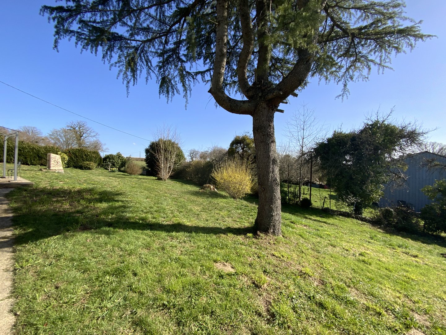 Deux dépendances et un grand garage en pignon.